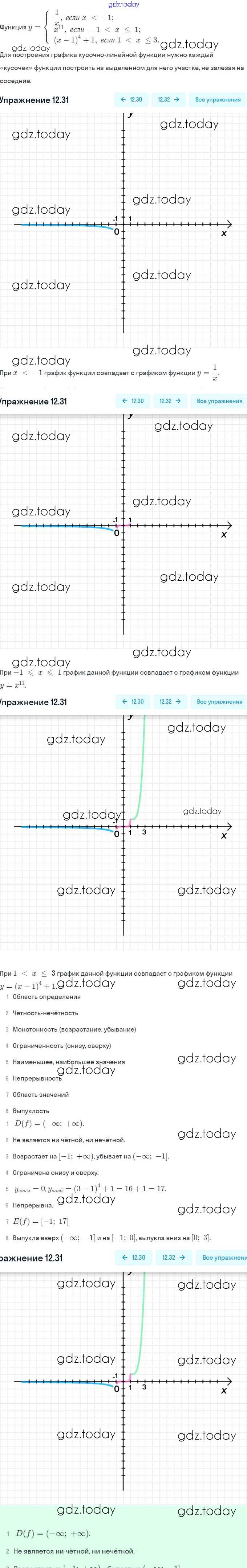 Ответы к §12. Функции y = xⁿ (n ∈ N), их свойства и графики Решение. Глава 3. Числовые функции 12.31 Задачнику по Алгебре для 9 класса Мордкович, Александрова Мнемозина 2010