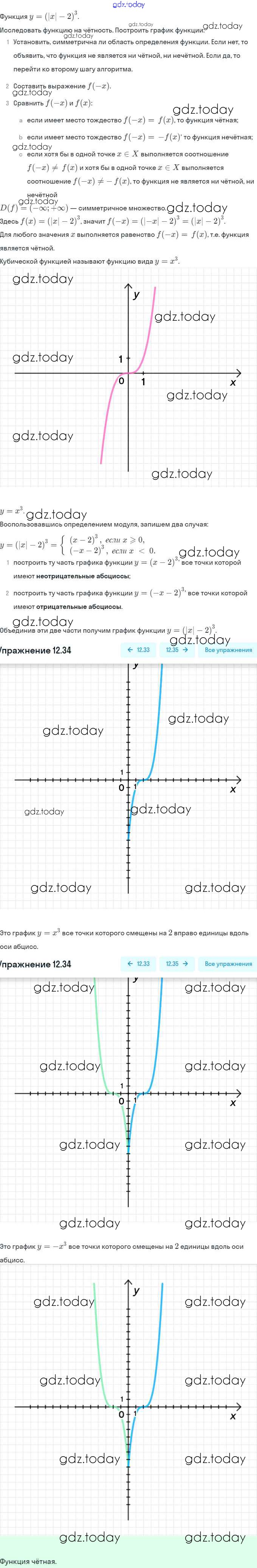 Ответы к §12. Функции y = xⁿ (n ∈ N), их свойства и графики Решение. Глава 3. Числовые функции 12.34 Задачнику по Алгебре для 9 класса Мордкович, Александрова Мнемозина 2010