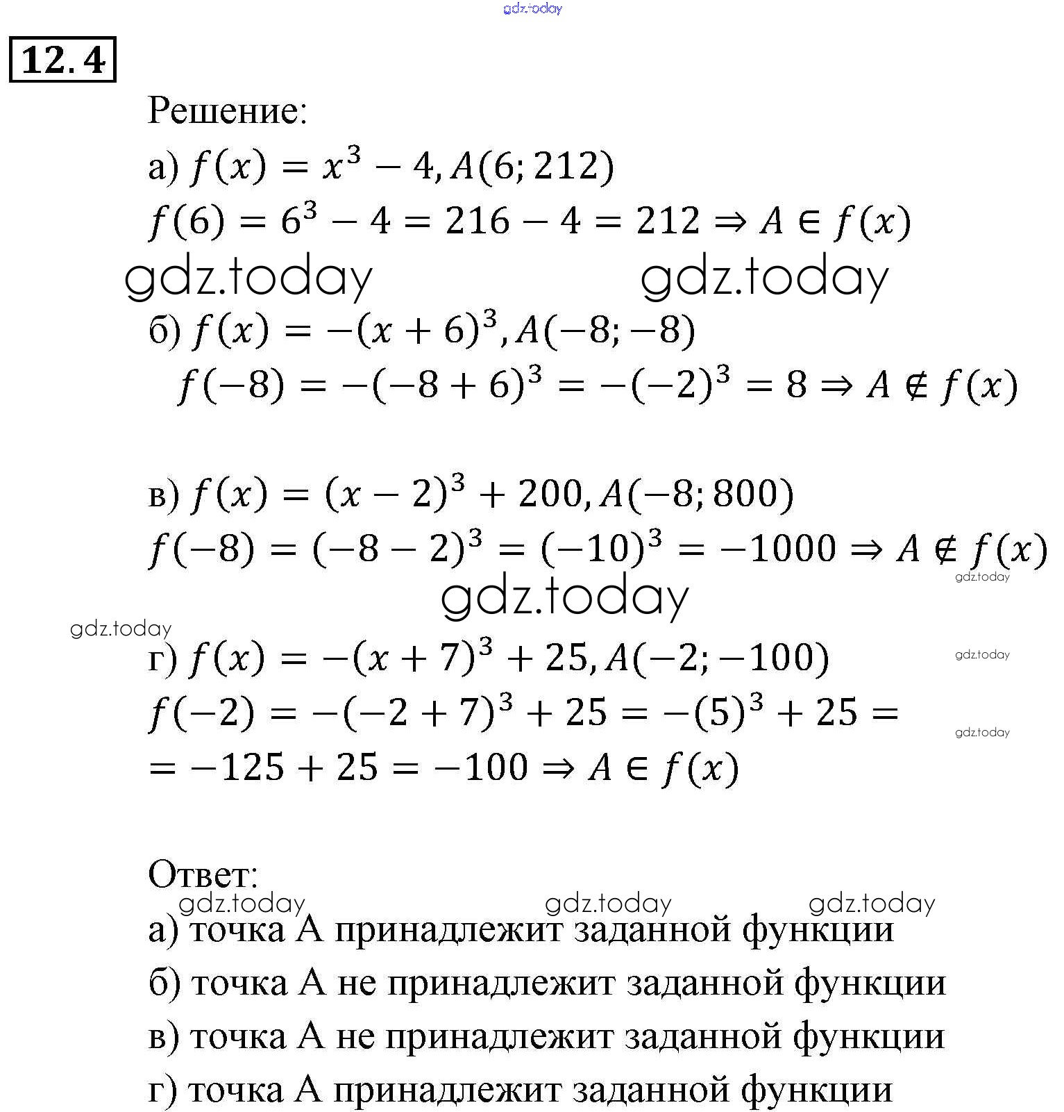 Ответы к § 12. Функции у = хп (п е N), их свойства и графики Глава 3. Числовые функции 4 Задачнику по Алгебре для 9 класса Мордкович, Александрова Мнемозина 2010