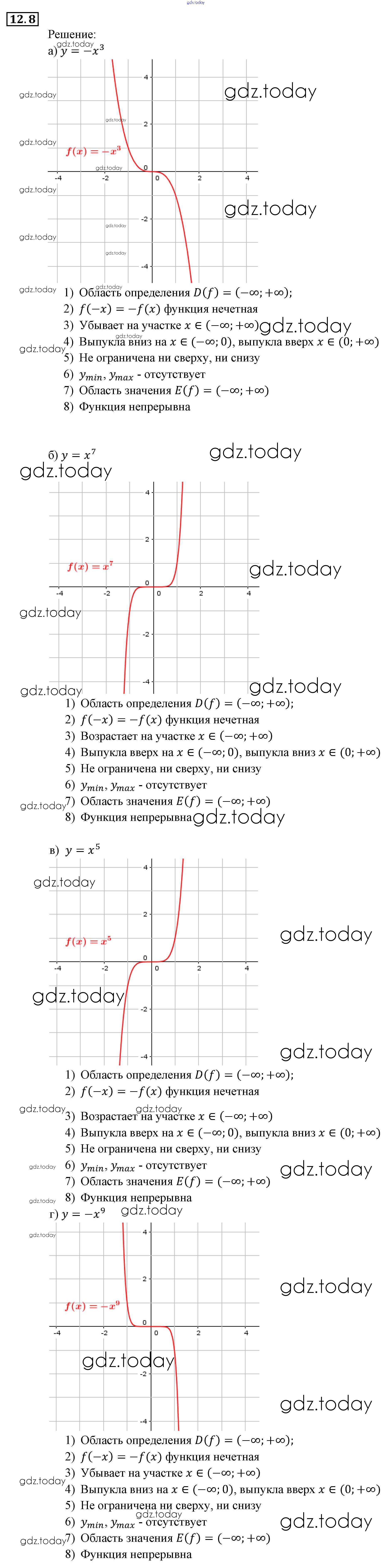 Ответы к § 12. Функции у = хп (п е N), их свойства и графики Глава 3. Числовые функции 8 Задачнику по Алгебре для 9 класса Мордкович, Александрова Мнемозина 2010
