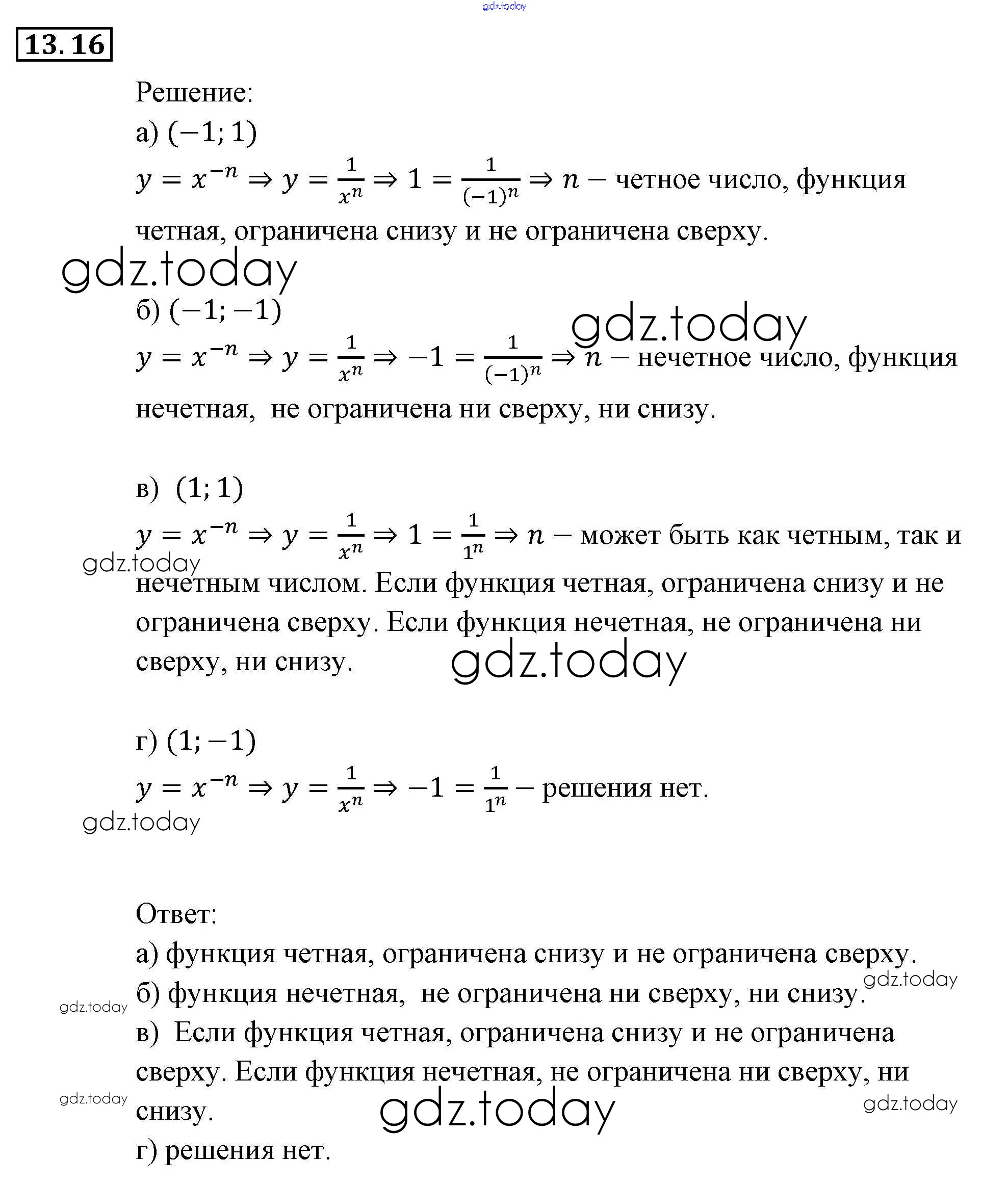 Ответы к § 13. Функции у = х~" (п е N), их свойства и графики Глава 3. Числовые функции 16 Задачнику по Алгебре для 9 класса Мордкович, Александрова Мнемозина 2010