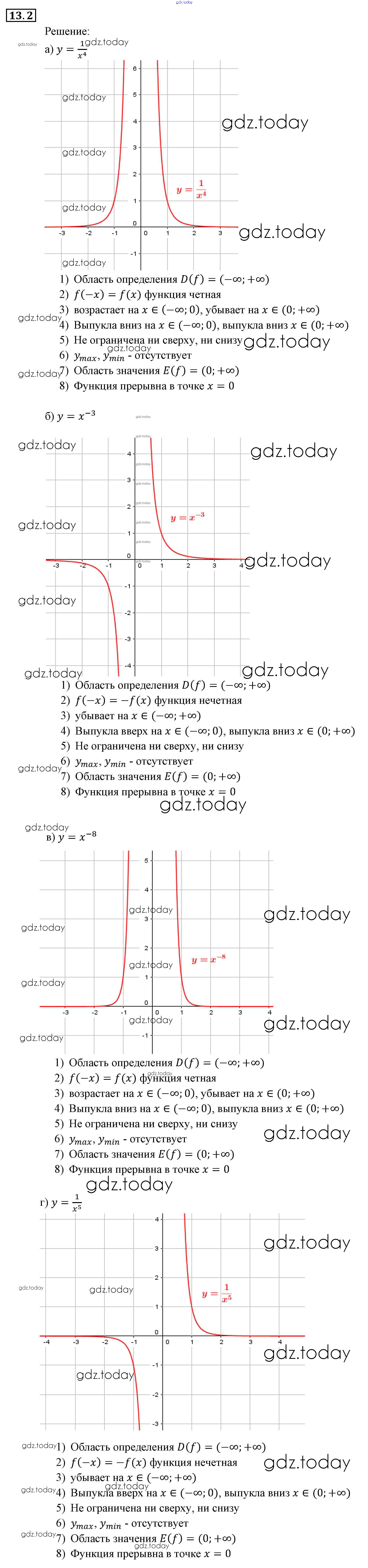 Ответы к § 13. Функции у = х~" (п е N), их свойства и графики Глава 3. Числовые функции 2 Задачнику по Алгебре для 9 класса Мордкович, Александрова Мнемозина 2010
