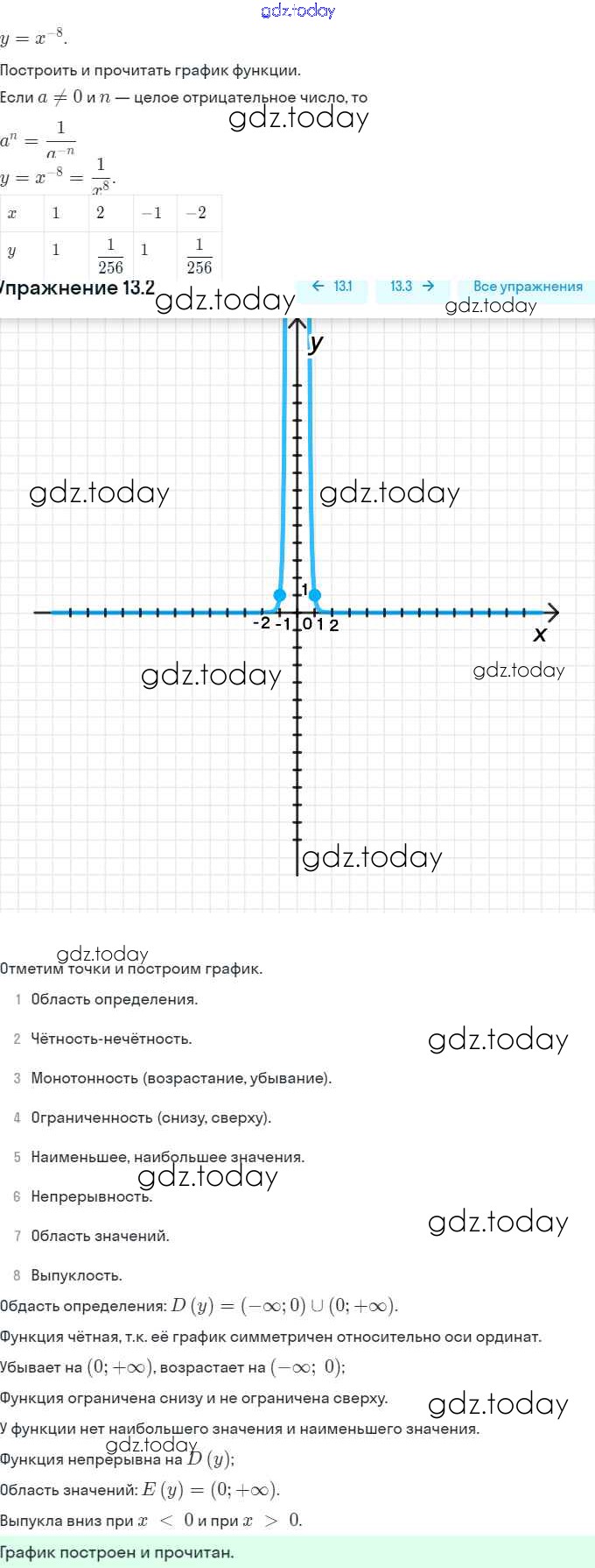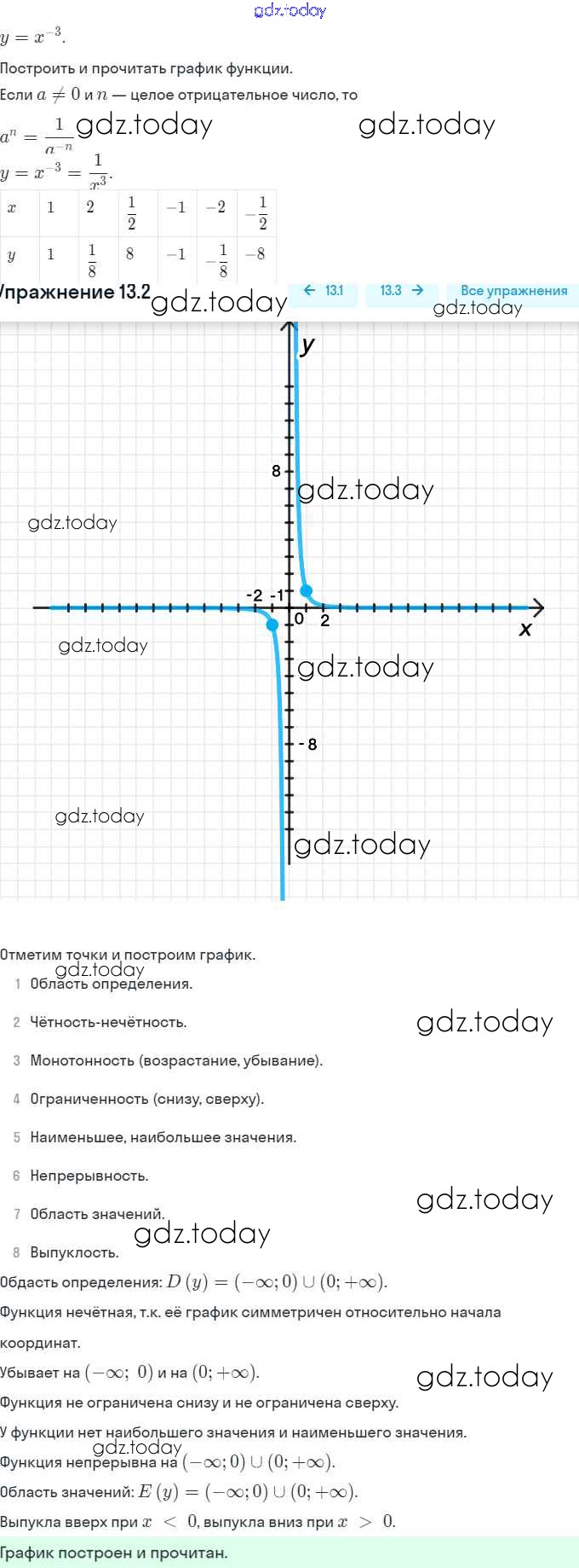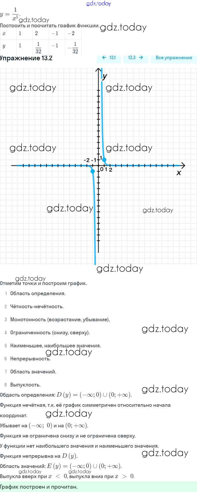 Ответы к §13. Функции y = x⁻ⁿ (n ∈ N), их свойства и графики Решение. Глава 3. Числовые функции 13.2 Задачнику по Алгебре для 9 класса Мордкович, Александрова Мнемозина 2010