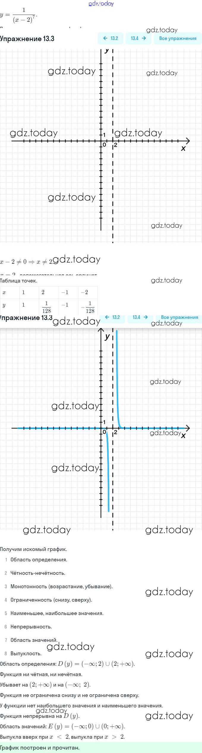Ответы к §13. Функции y = x⁻ⁿ (n ∈ N), их свойства и графики Решение. Глава 3. Числовые функции 13.3 Задачнику по Алгебре для 9 класса Мордкович, Александрова Мнемозина 2010