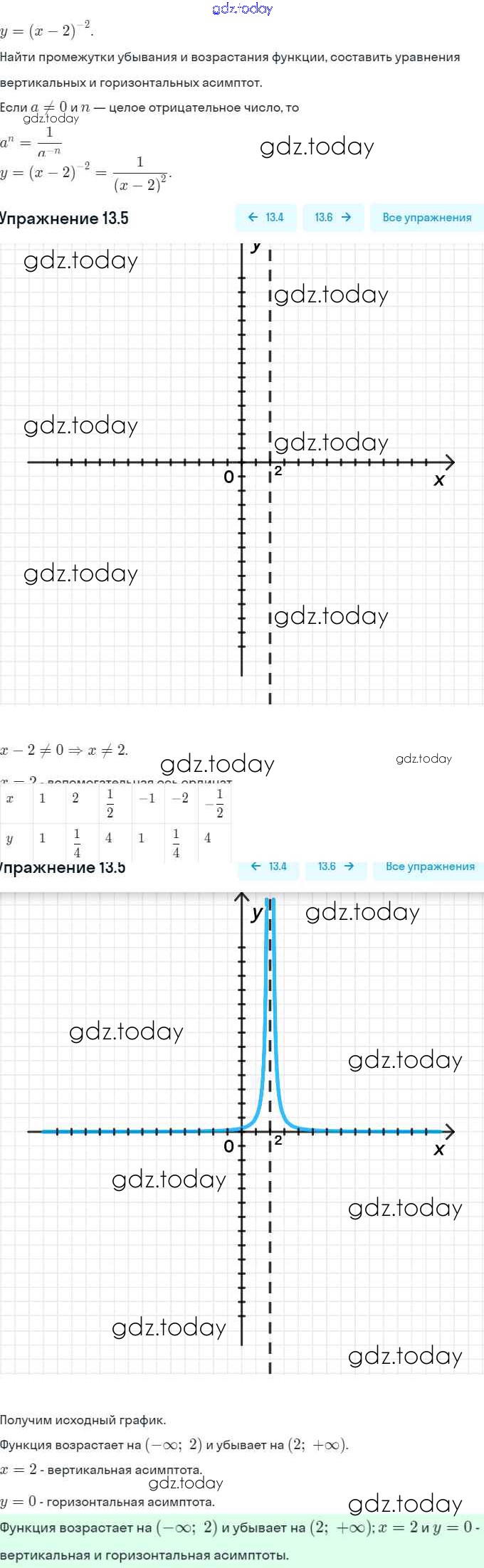 Ответы к §13. Функции y = x⁻ⁿ (n ∈ N), их свойства и графики Решение. Глава 3. Числовые функции 13.5 Задачнику по Алгебре для 9 класса Мордкович, Александрова Мнемозина 2010