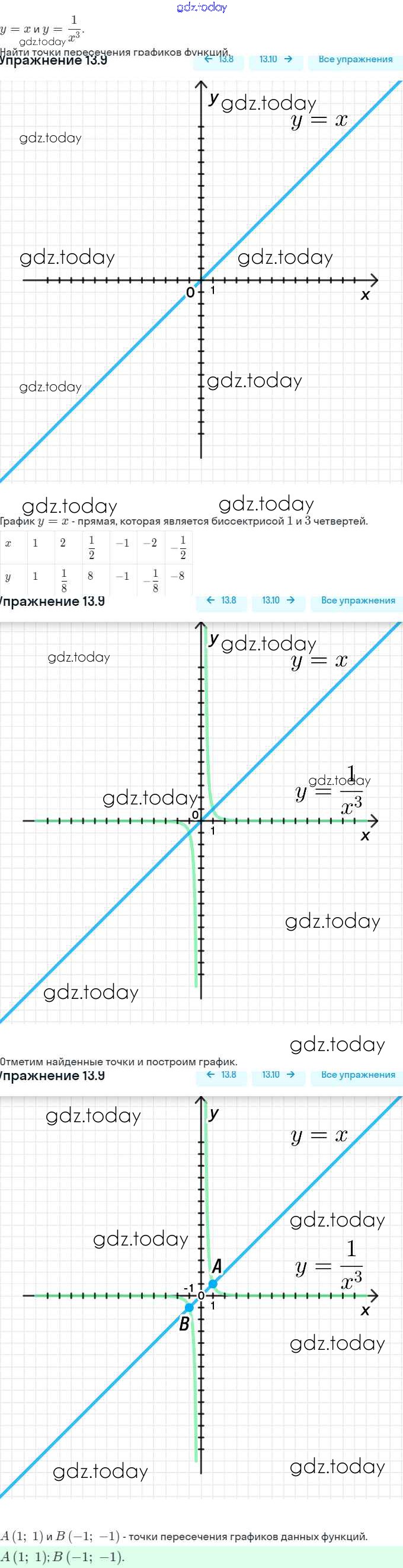 Ответы к §13. Функции y = x⁻ⁿ (n ∈ N), их свойства и графики Решение. Глава 3. Числовые функции 13.9 Задачнику по Алгебре для 9 класса Мордкович, Александрова Мнемозина 2010