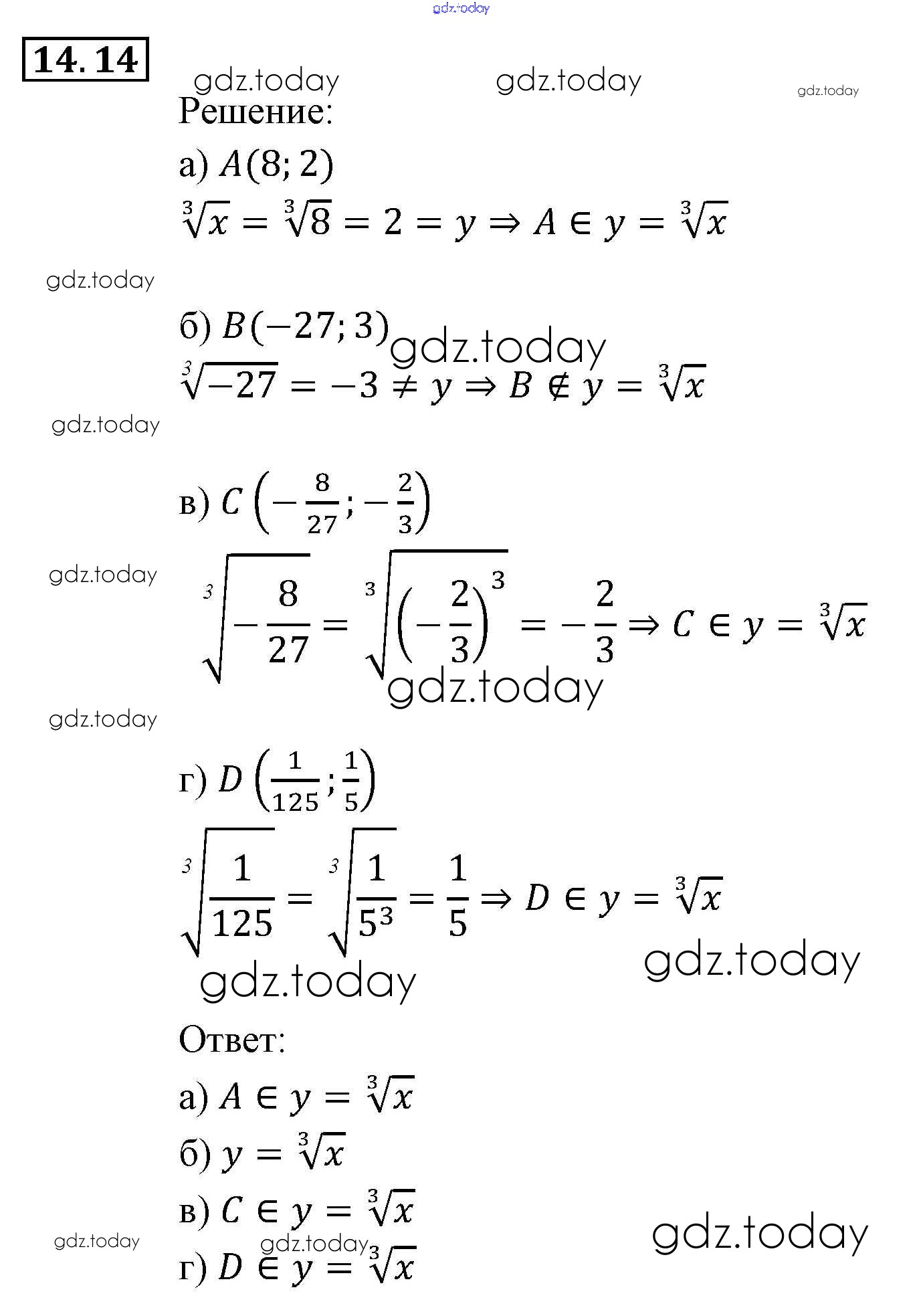 Ответы к § 14. Функция у = 3√х, ее свойства и график Глава 3. Числовые функции 14 Задачнику по Алгебре для 9 класса Мордкович, Александрова Мнемозина 2010
