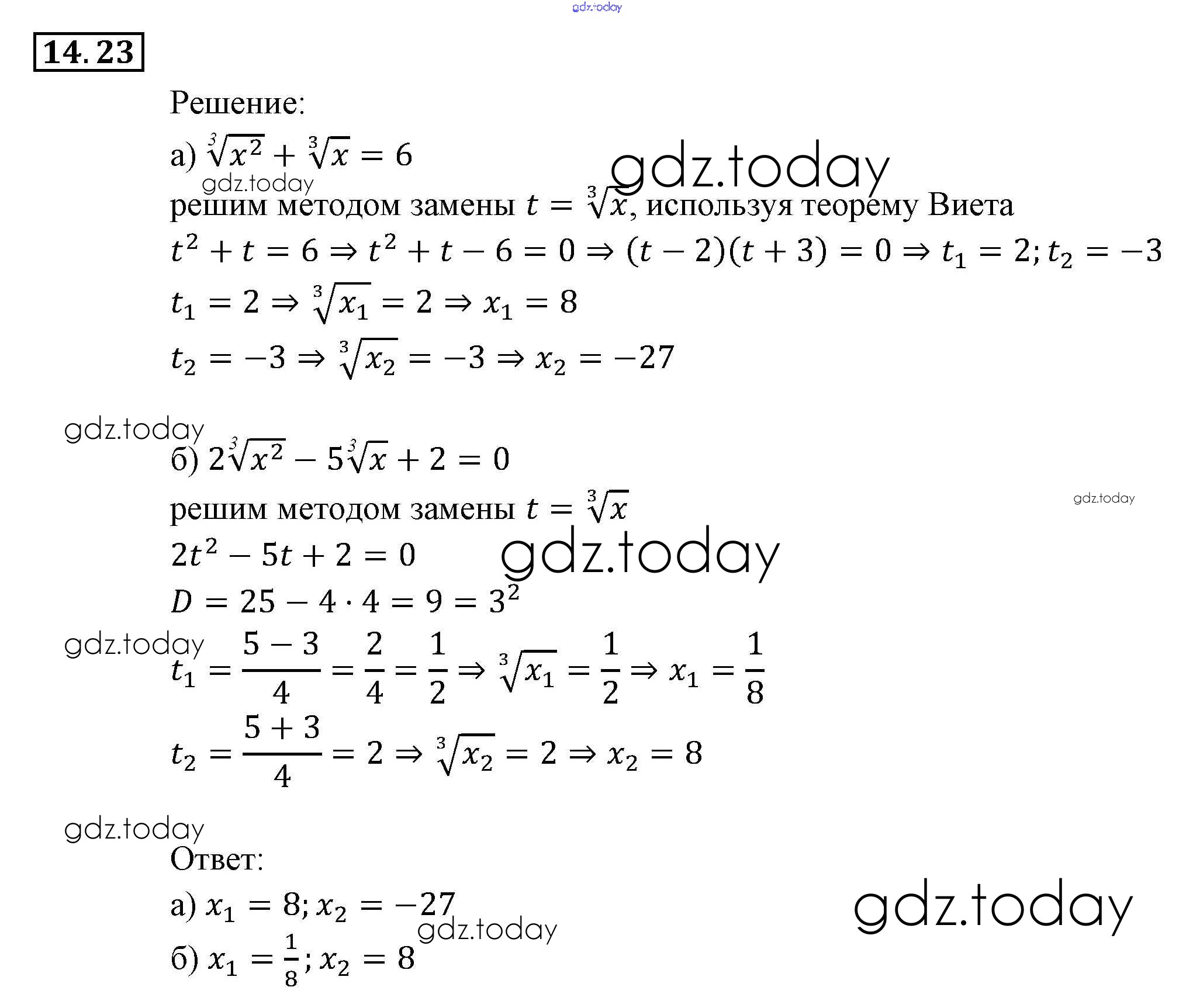 Ответы к § 14. Функция у = 3√х, ее свойства и график Глава 3. Числовые функции 23 Задачнику по Алгебре для 9 класса Мордкович, Александрова Мнемозина 2010