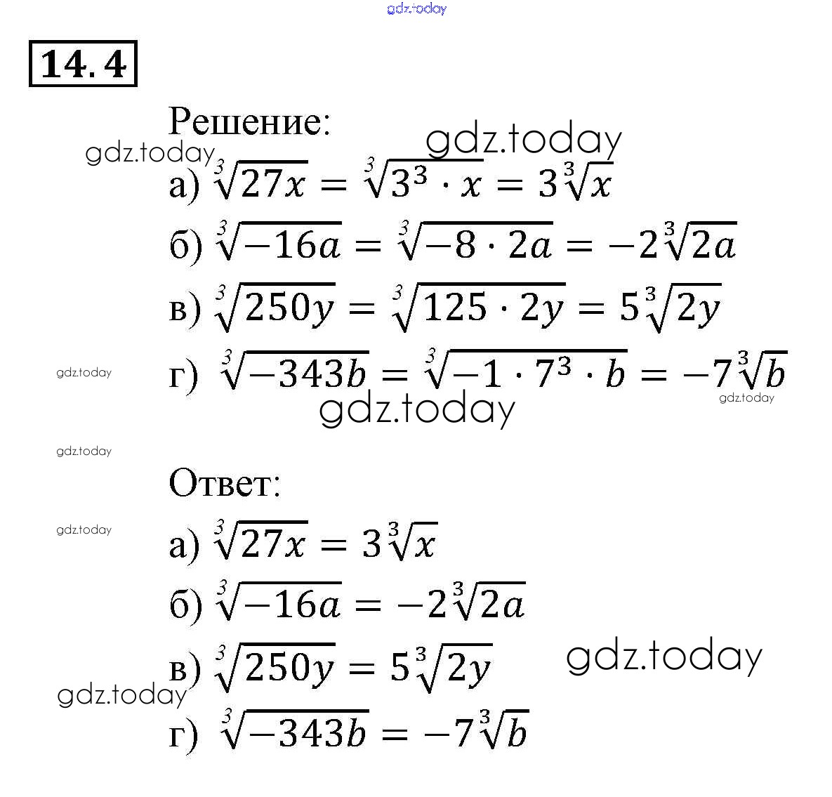 Ответы к § 14. Функция у = 3√х, ее свойства и график Глава 3. Числовые функции 4 Задачнику по Алгебре для 9 класса Мордкович, Александрова Мнемозина 2010