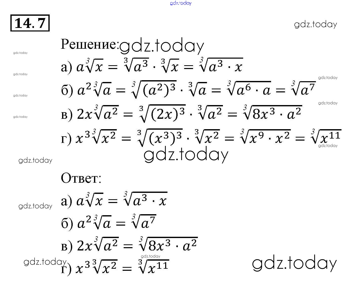 На страницах сайта gdz.today вы найдете учебный и вспомогательный материал, направленный на улучшения знаний школьной программы. ГДЗ - онлайн мир знаний § 14. Функция у = 3√х, ее свойства и график Глава 3. Числовые функции 7 Задачнику по Алгебре для 9 класса Мордкович, Александрова Мнемозина 2010