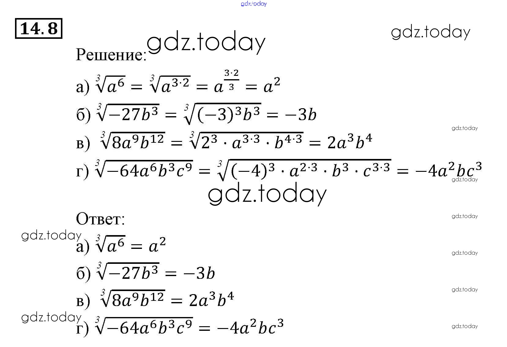 Ответы к § 14. Функция у = 3√х, ее свойства и график Глава 3. Числовые функции 8 Задачнику по Алгебре для 9 класса Мордкович, Александрова Мнемозина 2010