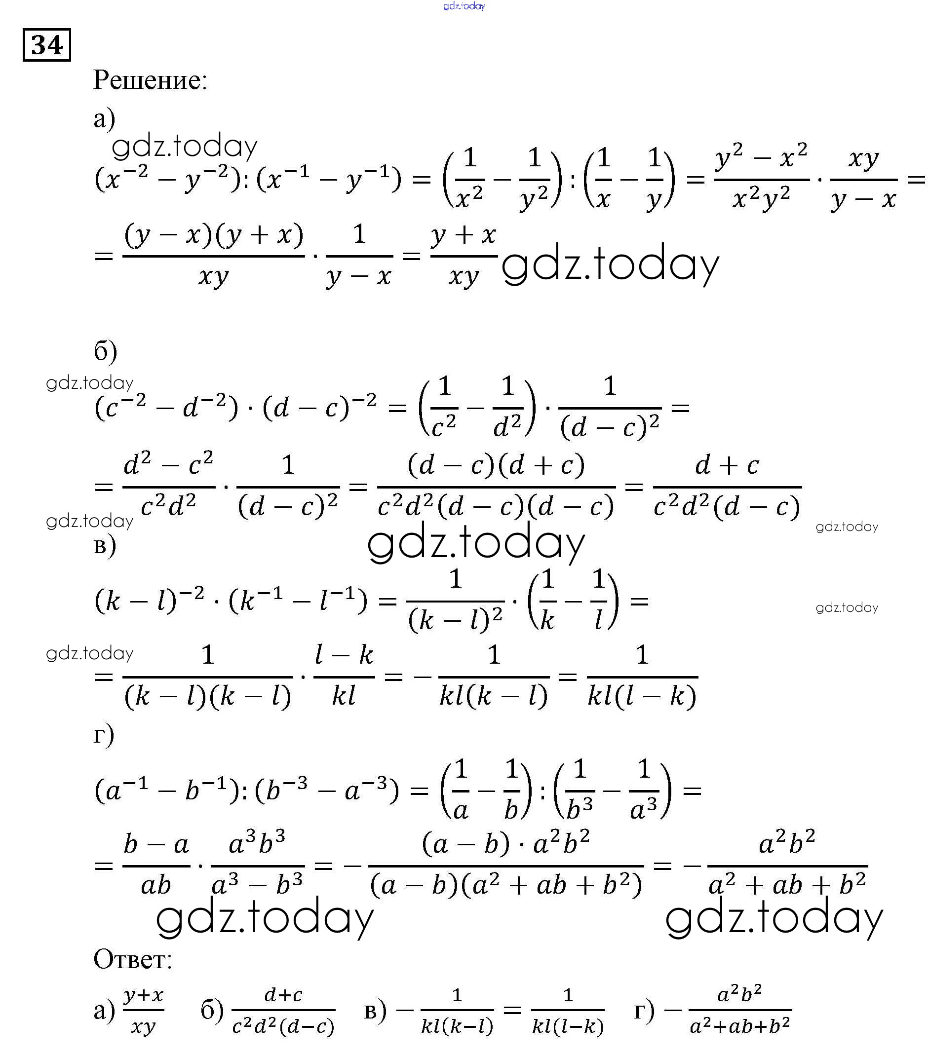 Ответы к Повторение 34 Задачнику по Алгебре для 9 класса Мордкович, Александрова Мнемозина 2010