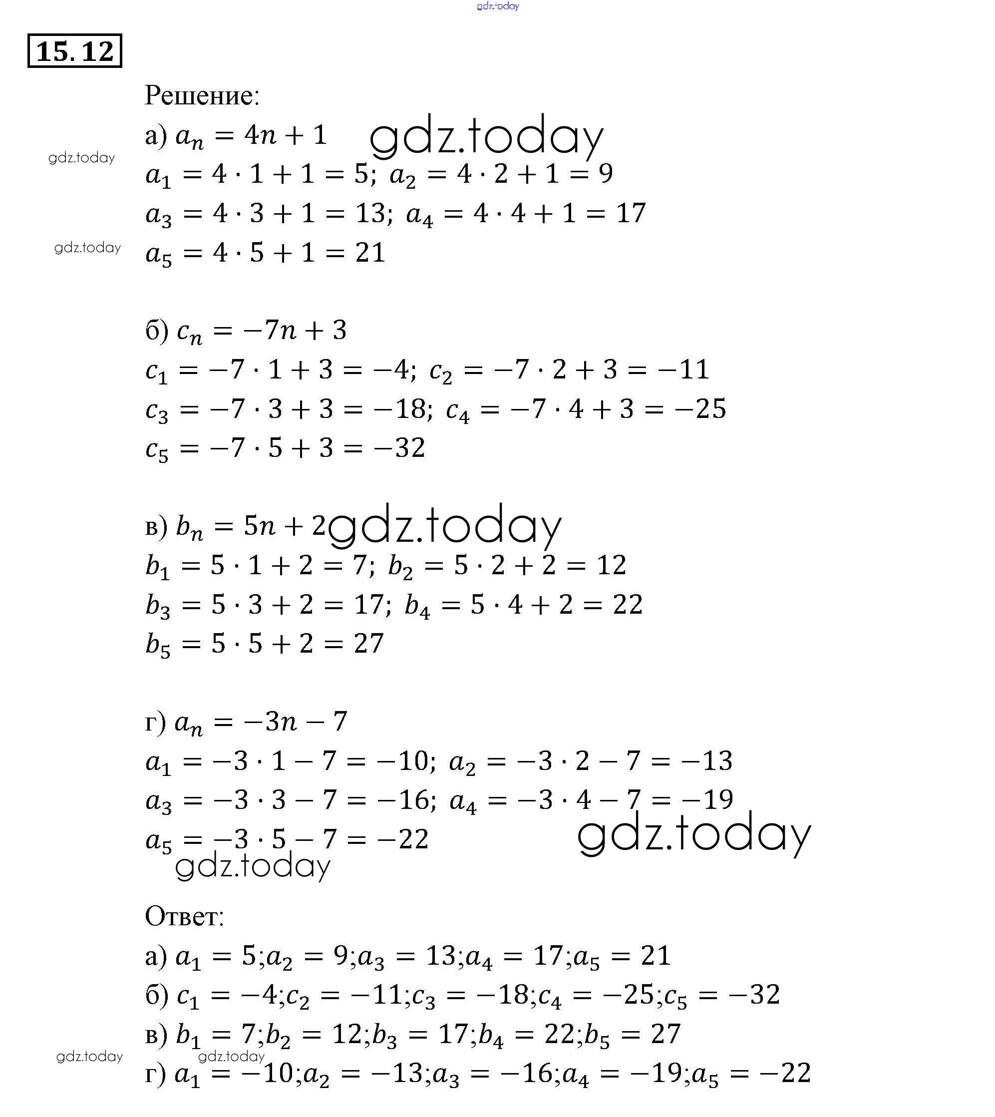 Ответы к § 15. Числовые последовательности Глава 4. Прогрессии 12 Задачнику по Алгебре для 9 класса Мордкович, Александрова Мнемозина 2010