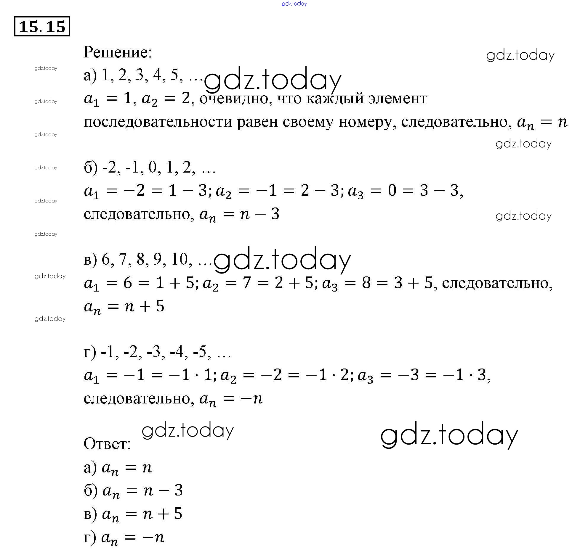 Ответы к § 15. Числовые последовательности Глава 4. Прогрессии 15 Задачнику по Алгебре для 9 класса Мордкович, Александрова Мнемозина 2010