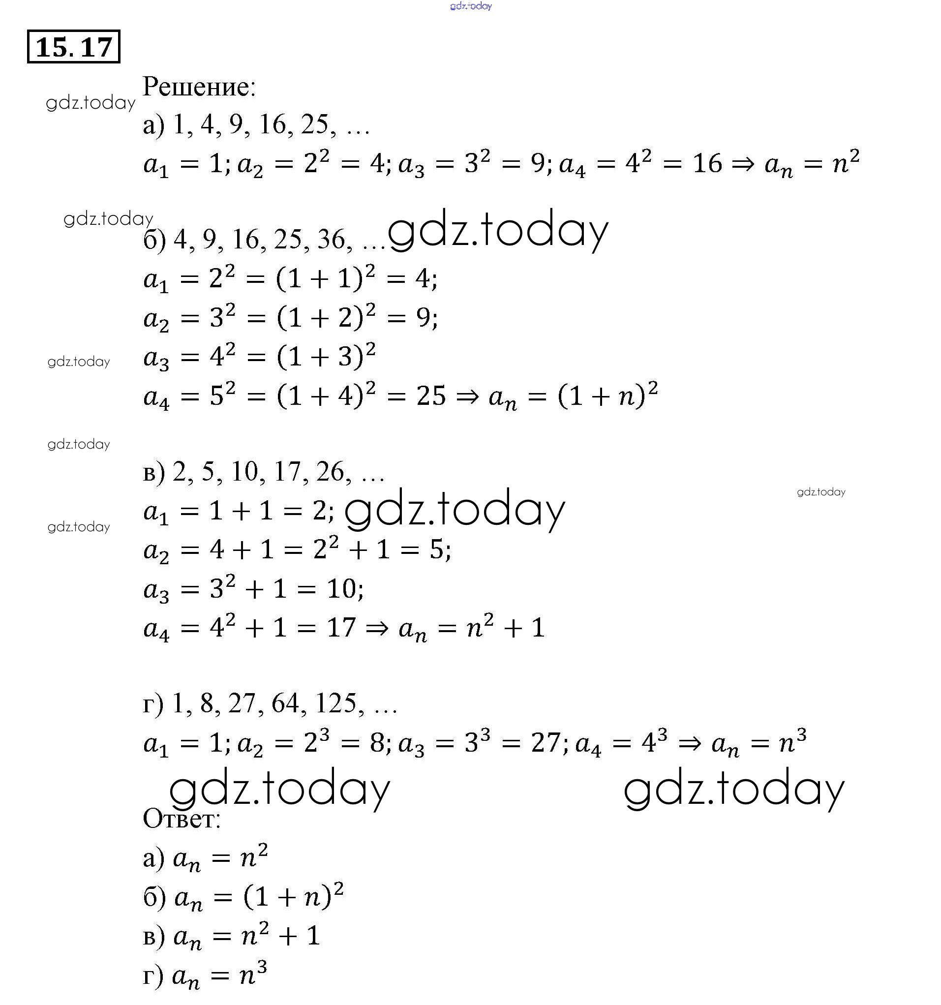 На страницах сайта gdz.today вы найдете учебный и вспомогательный материал, направленный на улучшения знаний школьной программы. ГДЗ - онлайн мир знаний § 15. Числовые последовательности Глава 4. Прогрессии 17 Задачнику по Алгебре для 9 класса Мордкович, Александрова Мнемозина 2010