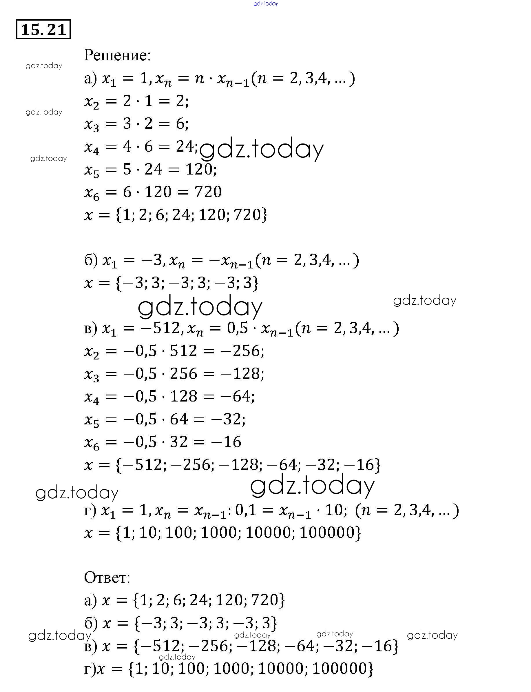 Ответы к § 15. Числовые последовательности Глава 4. Прогрессии 21 Задачнику по Алгебре для 9 класса Мордкович, Александрова Мнемозина 2010