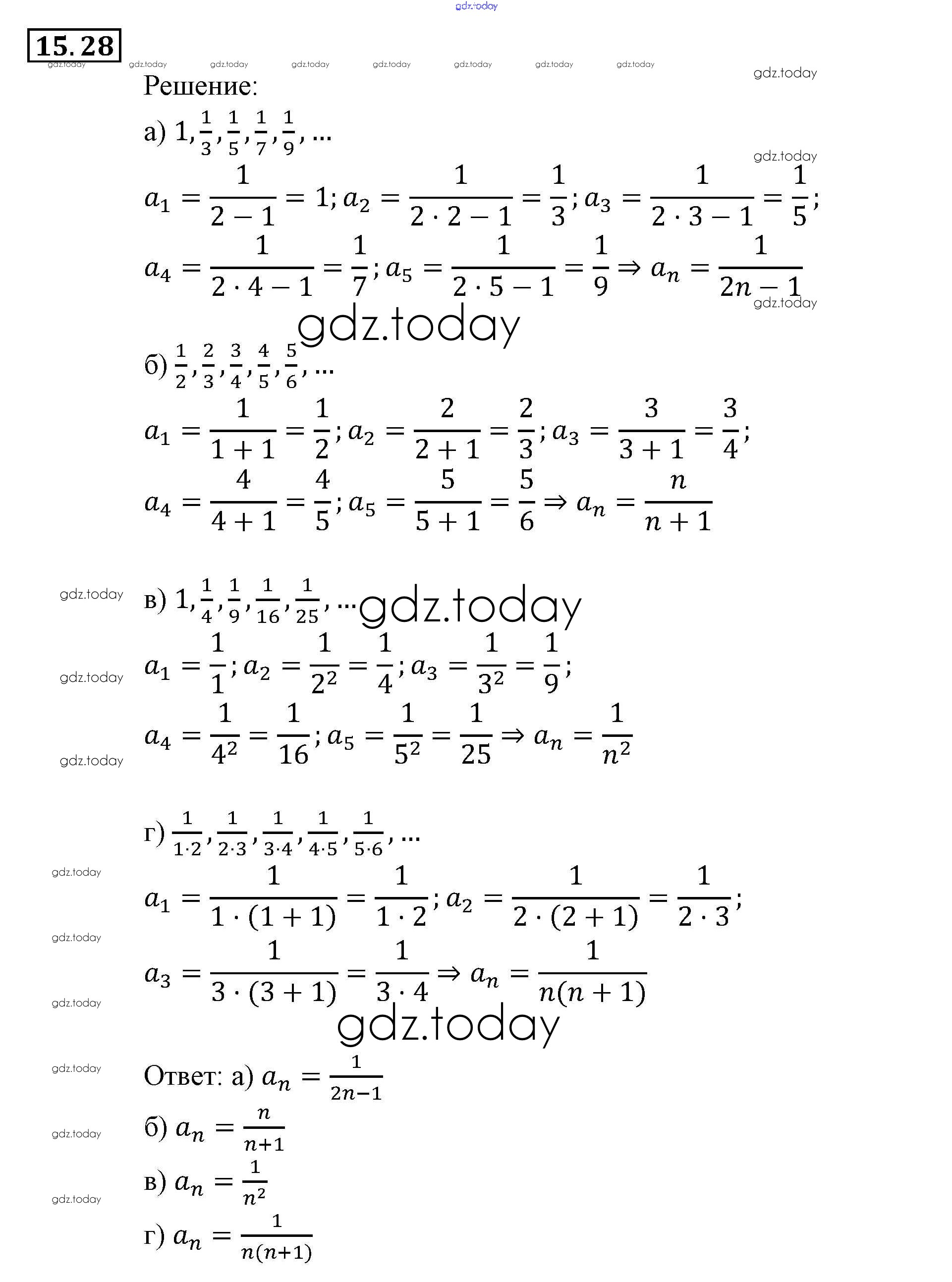 На страницах сайта gdz.today вы найдете учебный и вспомогательный материал, направленный на улучшения знаний школьной программы. ГДЗ - онлайн мир знаний § 15. Числовые последовательности Глава 4. Прогрессии 28 Задачнику по Алгебре для 9 класса Мордкович, Александрова Мнемозина 2010