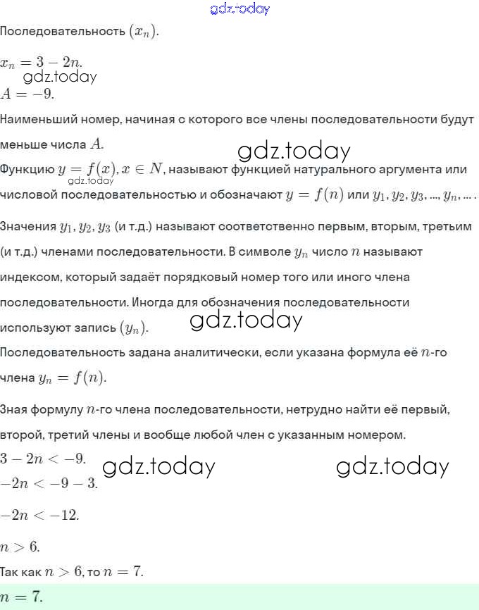 Ответы к § 15. Числовые последовательности Решение. Глава 4. Прогрессии 15.40 Задачнику по Алгебре для 9 класса Мордкович, Александрова Мнемозина 2010