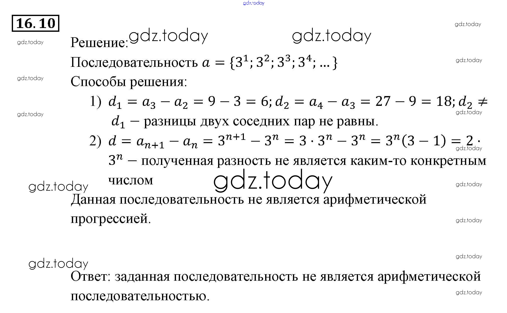 На страницах сайта gdz.today вы найдете учебный и вспомогательный материал, направленный на улучшения знаний школьной программы. ГДЗ - онлайн мир знаний § 16. Арифметическая прогрессия Глава 4. Прогрессии 10 Задачнику по Алгебре для 9 класса Мордкович, Александрова Мнемозина 2010