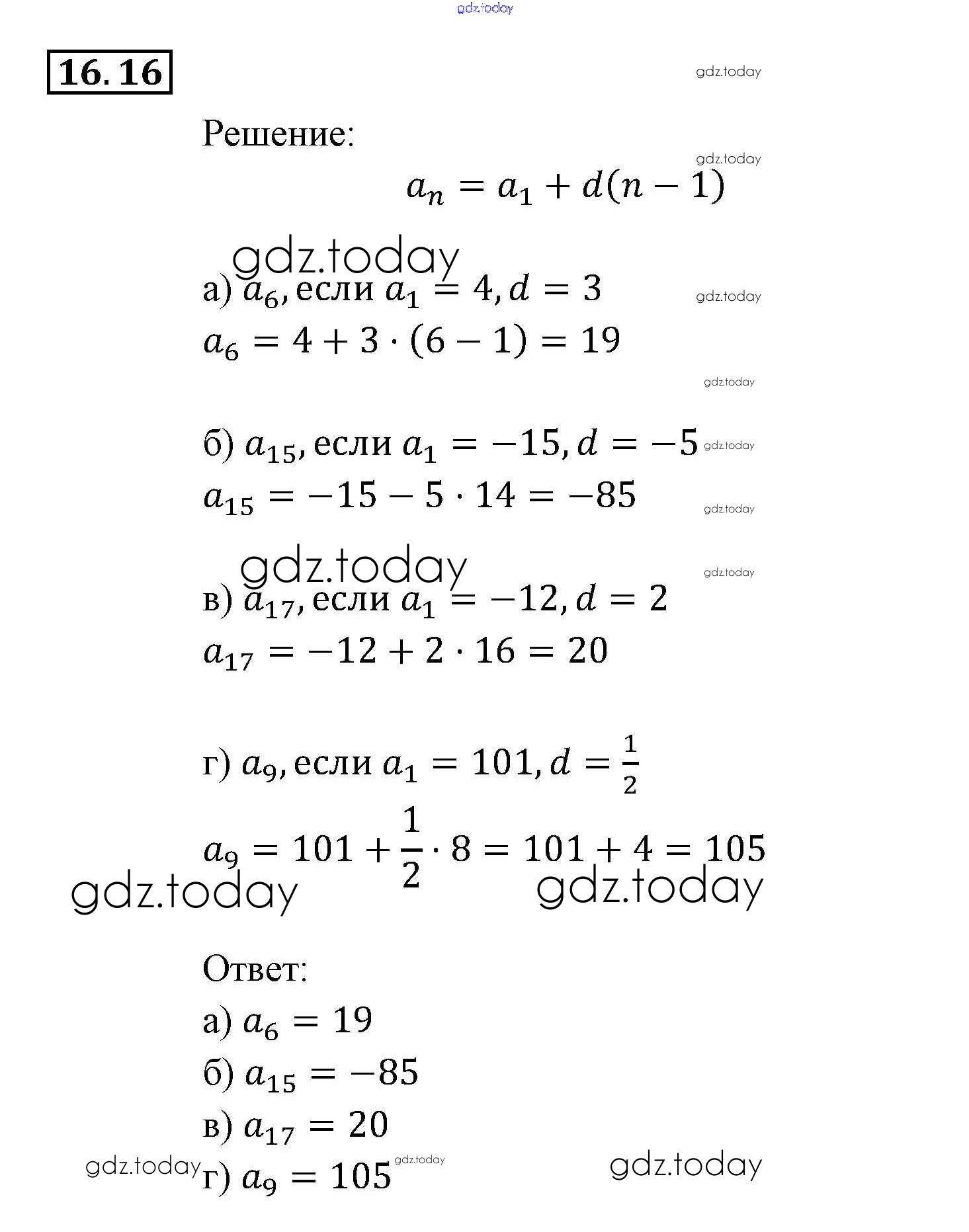 На страницах сайта gdz.today вы найдете учебный и вспомогательный материал, направленный на улучшения знаний школьной программы. ГДЗ - онлайн мир знаний § 16. Арифметическая прогрессия Глава 4. Прогрессии 16 Задачнику по Алгебре для 9 класса Мордкович, Александрова Мнемозина 2010