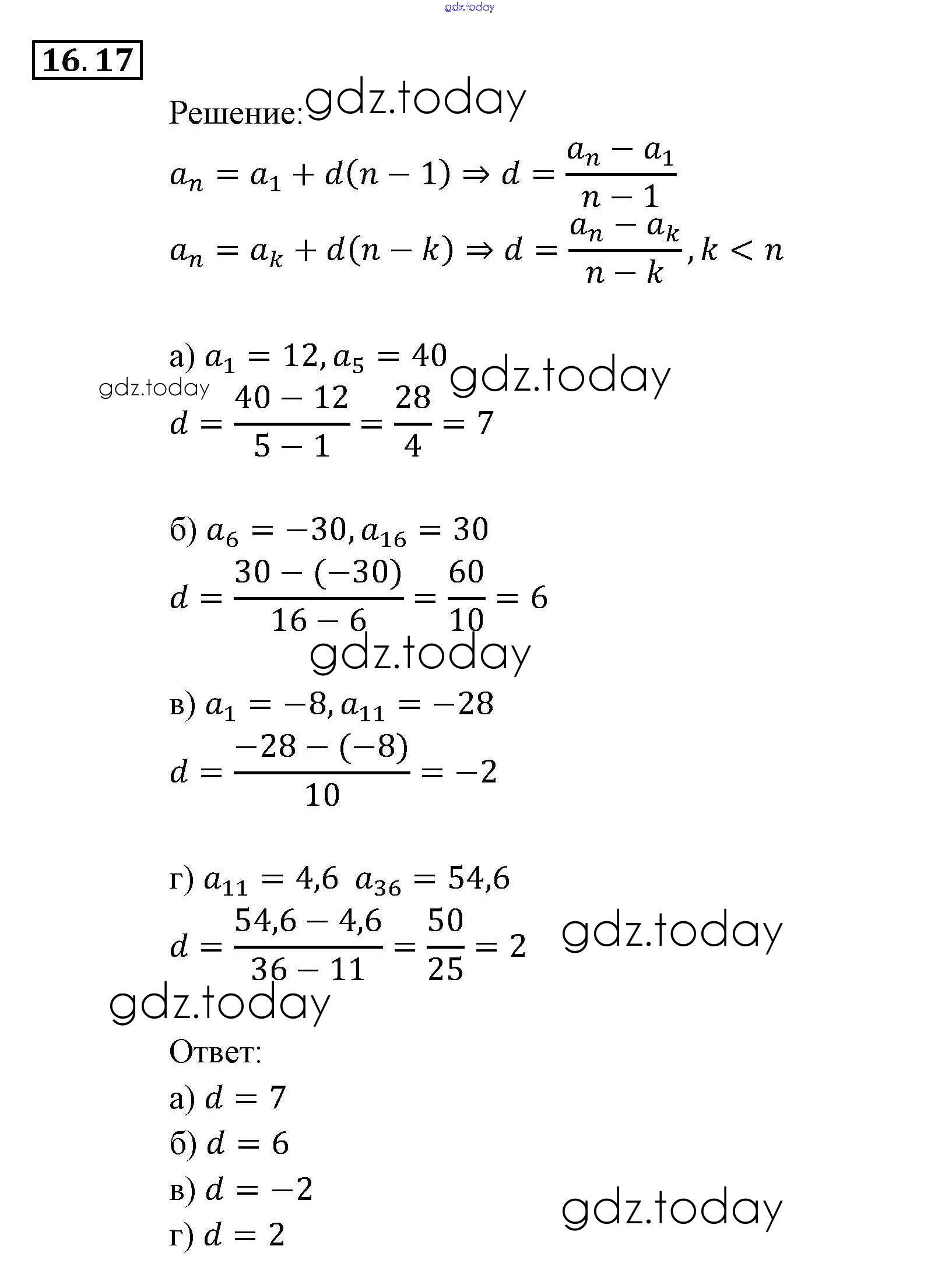 На страницах сайта gdz.today вы найдете учебный и вспомогательный материал, направленный на улучшения знаний школьной программы. ГДЗ - онлайн мир знаний § 16. Арифметическая прогрессия Глава 4. Прогрессии 17 Задачнику по Алгебре для 9 класса Мордкович, Александрова Мнемозина 2010