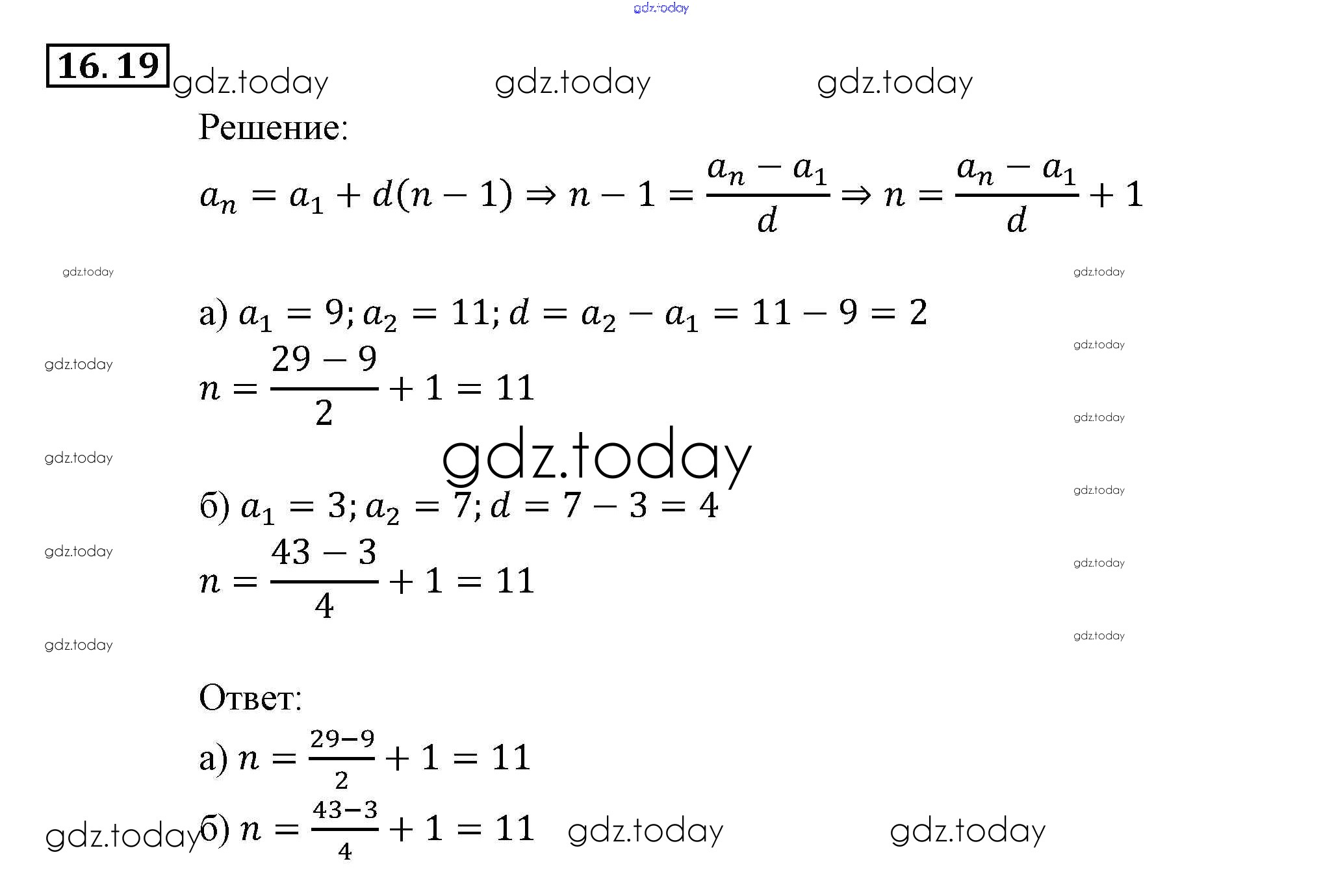 На страницах сайта gdz.today вы найдете учебный и вспомогательный материал, направленный на улучшения знаний школьной программы. ГДЗ - онлайн мир знаний § 16. Арифметическая прогрессия Глава 4. Прогрессии 19 Задачнику по Алгебре для 9 класса Мордкович, Александрова Мнемозина 2010