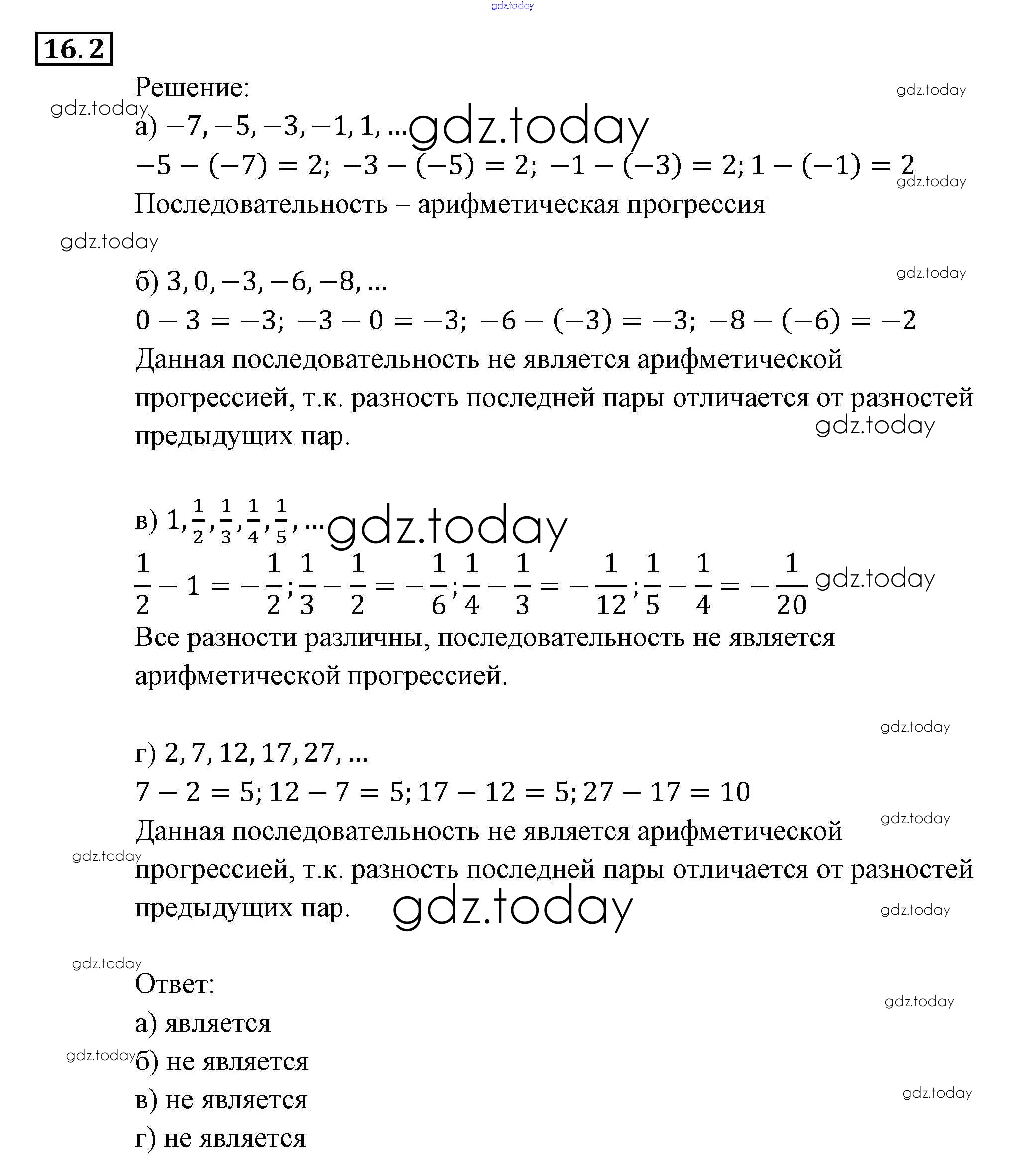 На страницах сайта gdz.today вы найдете учебный и вспомогательный материал, направленный на улучшения знаний школьной программы. ГДЗ - онлайн мир знаний § 16. Арифметическая прогрессия Глава 4. Прогрессии 2 Задачнику по Алгебре для 9 класса Мордкович, Александрова Мнемозина 2010