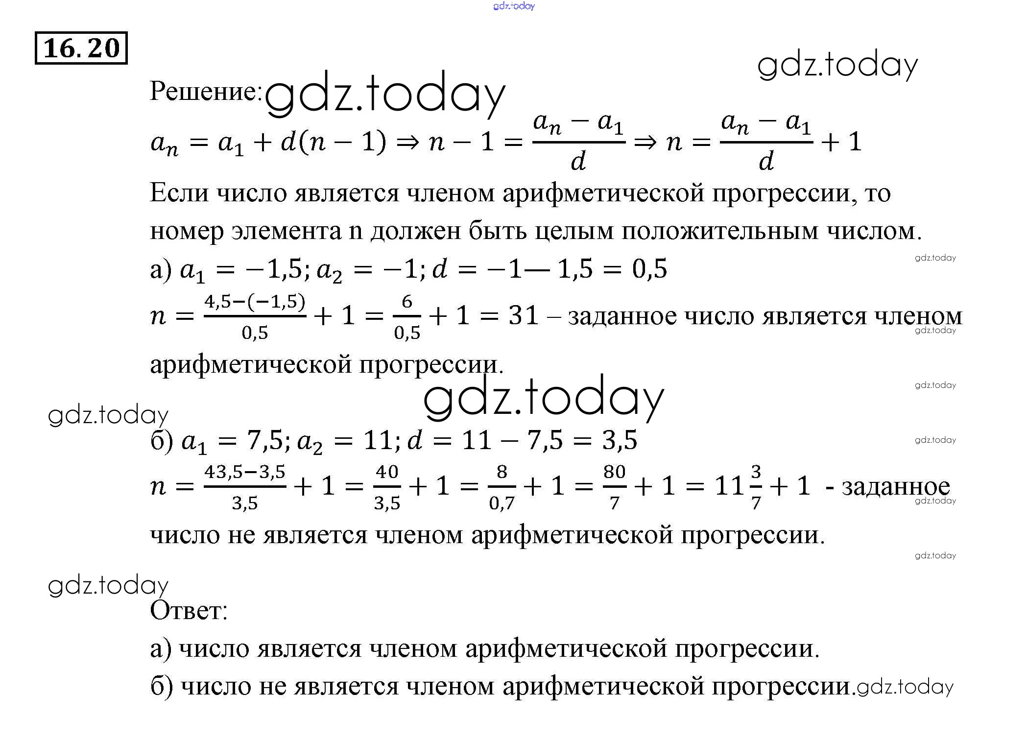 На страницах сайта gdz.today вы найдете учебный и вспомогательный материал, направленный на улучшения знаний школьной программы. ГДЗ - онлайн мир знаний § 16. Арифметическая прогрессия Глава 4. Прогрессии 20 Задачнику по Алгебре для 9 класса Мордкович, Александрова Мнемозина 2010