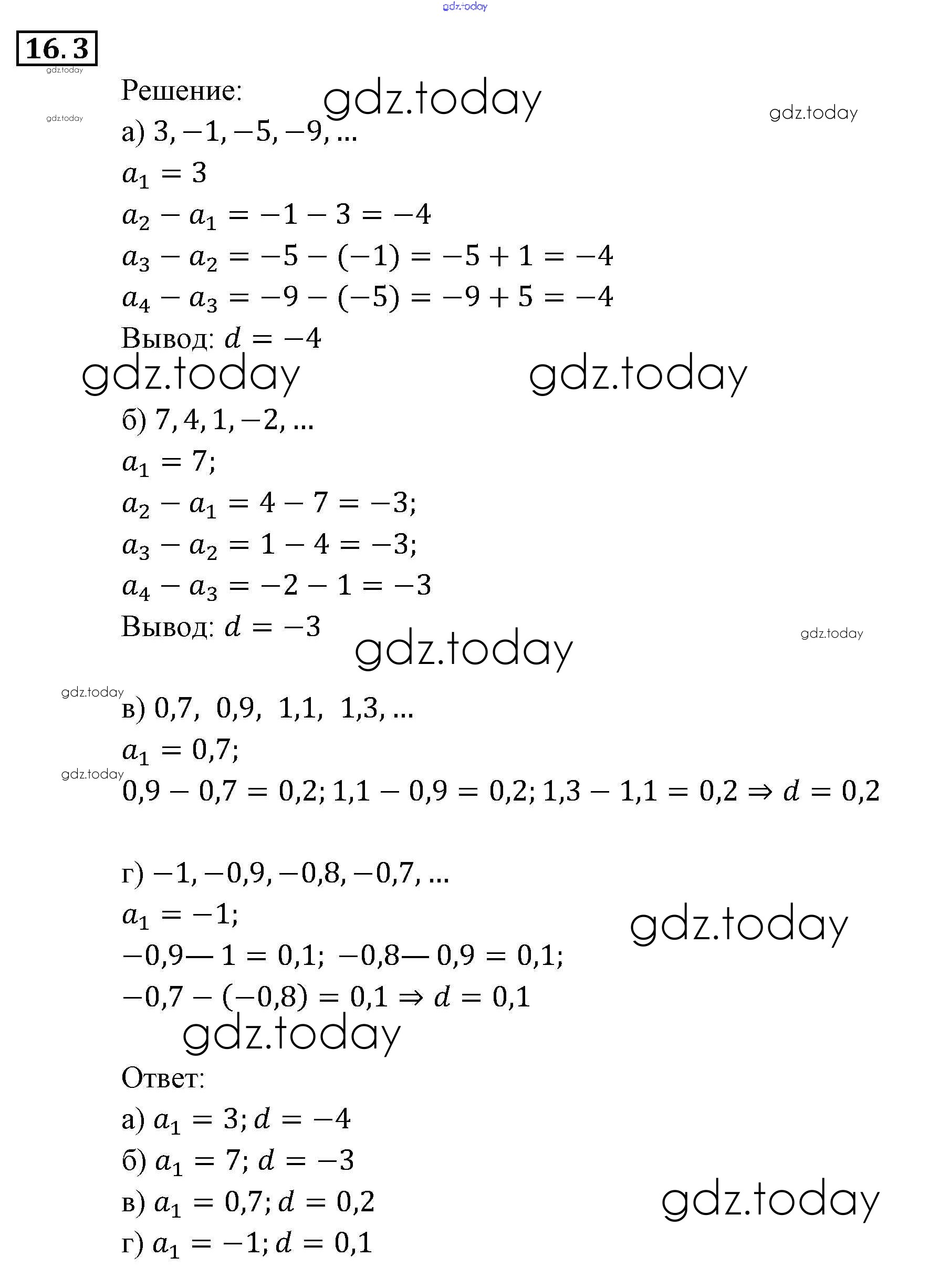 На страницах сайта gdz.today вы найдете учебный и вспомогательный материал, направленный на улучшения знаний школьной программы. ГДЗ - онлайн мир знаний § 16. Арифметическая прогрессия Глава 4. Прогрессии 3 Задачнику по Алгебре для 9 класса Мордкович, Александрова Мнемозина 2010