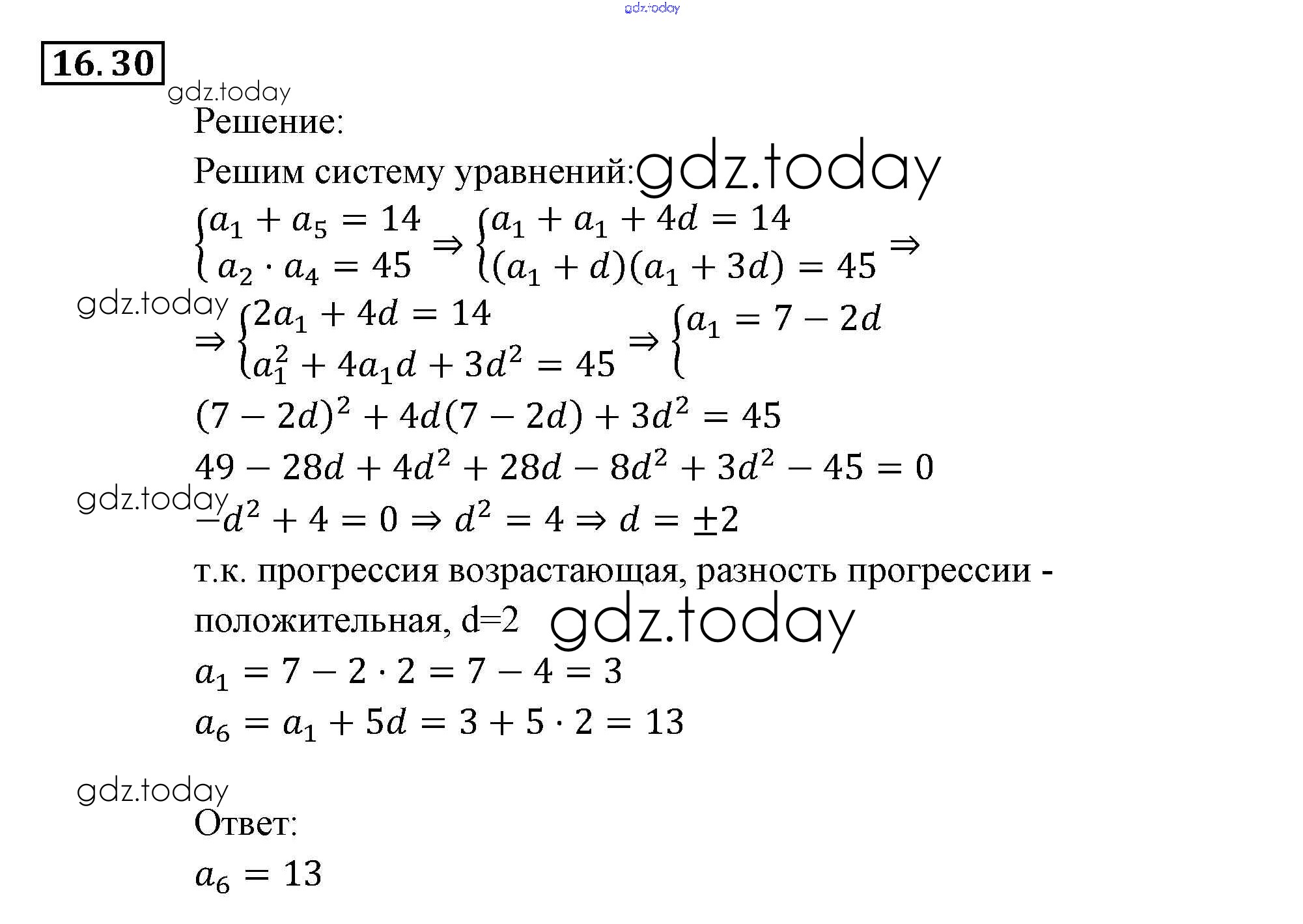 На страницах сайта gdz.today вы найдете учебный и вспомогательный материал, направленный на улучшения знаний школьной программы. ГДЗ - онлайн мир знаний § 16. Арифметическая прогрессия Глава 4. Прогрессии 30 Задачнику по Алгебре для 9 класса Мордкович, Александрова Мнемозина 2010