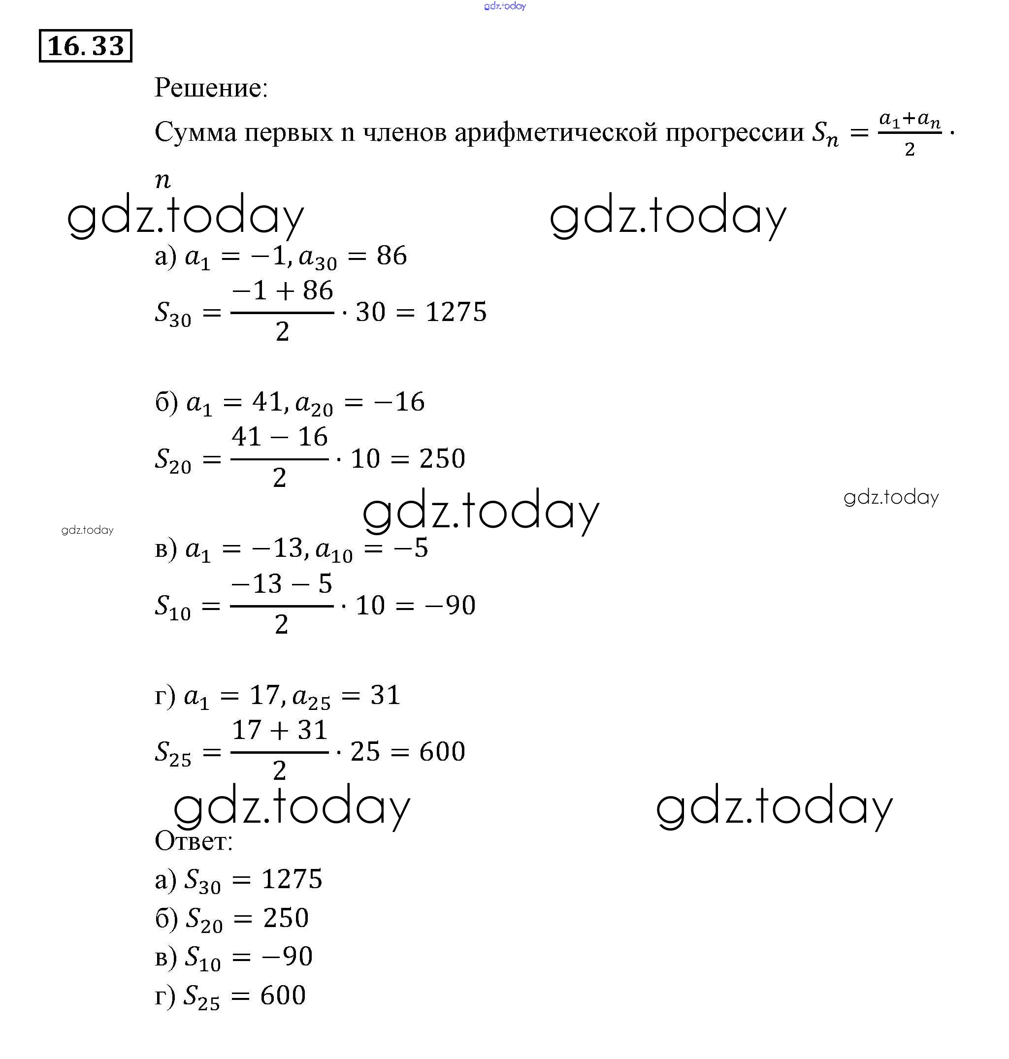 На страницах сайта gdz.today вы найдете учебный и вспомогательный материал, направленный на улучшения знаний школьной программы. ГДЗ - онлайн мир знаний § 16. Арифметическая прогрессия Глава 4. Прогрессии 33 Задачнику по Алгебре для 9 класса Мордкович, Александрова Мнемозина 2010