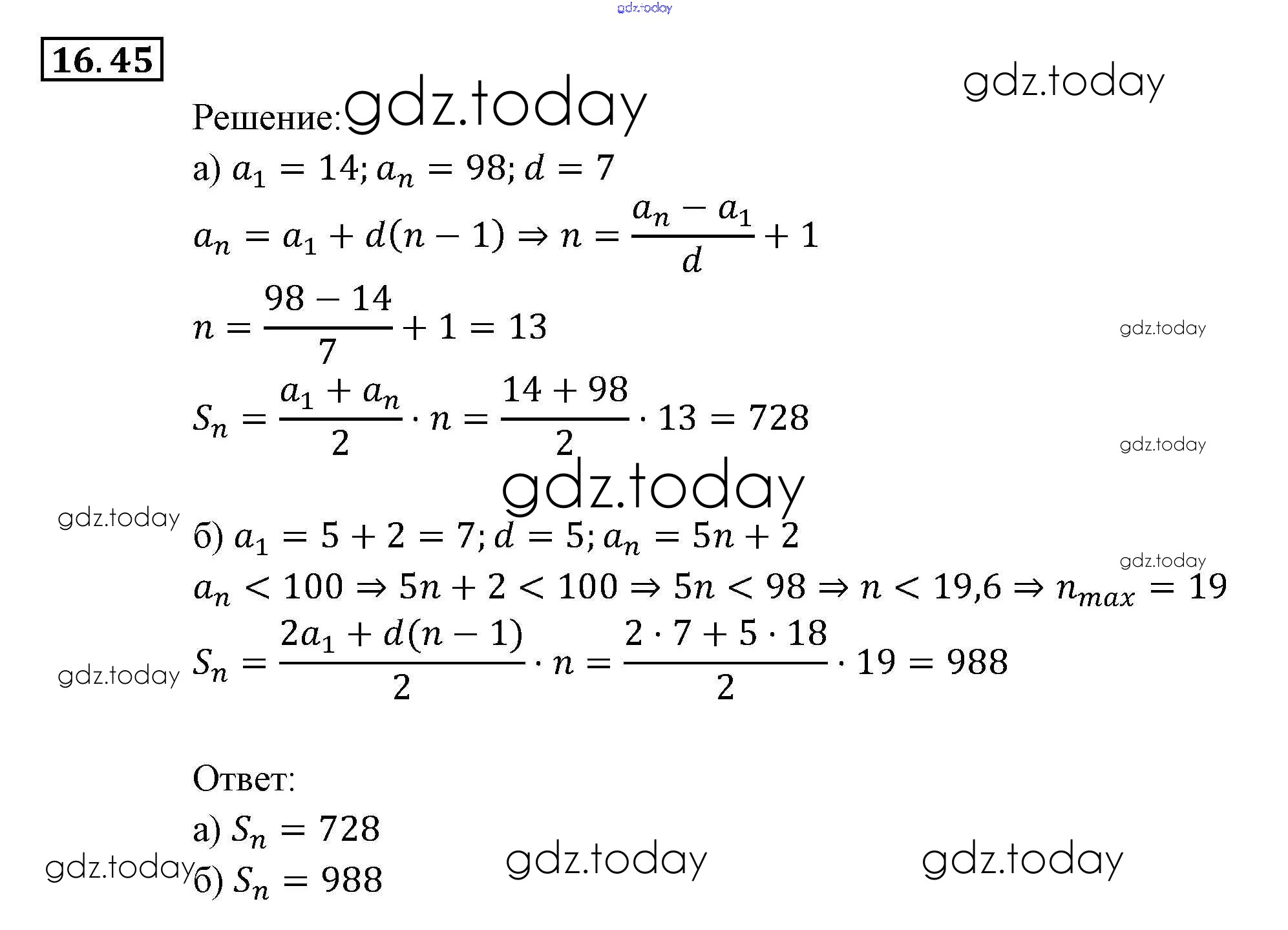 На страницах сайта gdz.today вы найдете учебный и вспомогательный материал, направленный на улучшения знаний школьной программы. ГДЗ - онлайн мир знаний § 16. Арифметическая прогрессия Глава 4. Прогрессии 45 Задачнику по Алгебре для 9 класса Мордкович, Александрова Мнемозина 2010
