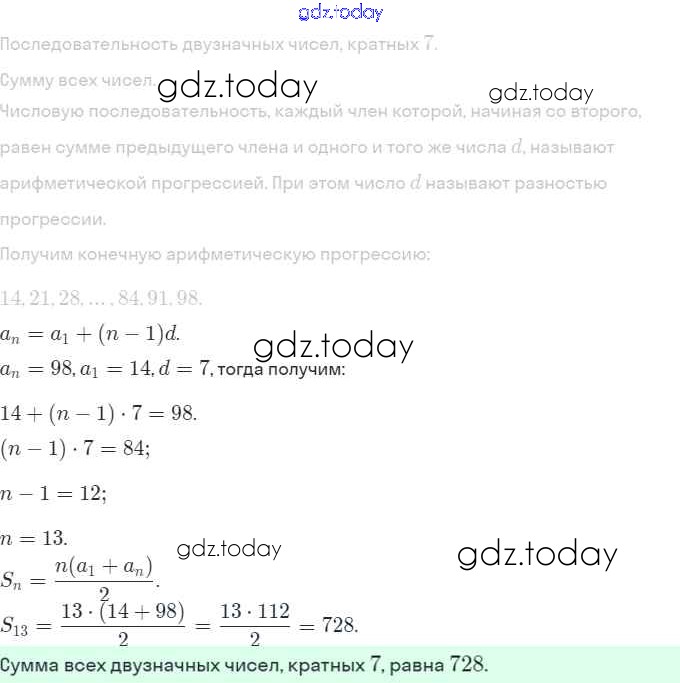 Ответы к § 16. Арифметическая прогрессия Решение. Глава 4. Прогрессии 16.45 Задачнику по Алгебре для 9 класса Мордкович, Александрова Мнемозина 2010