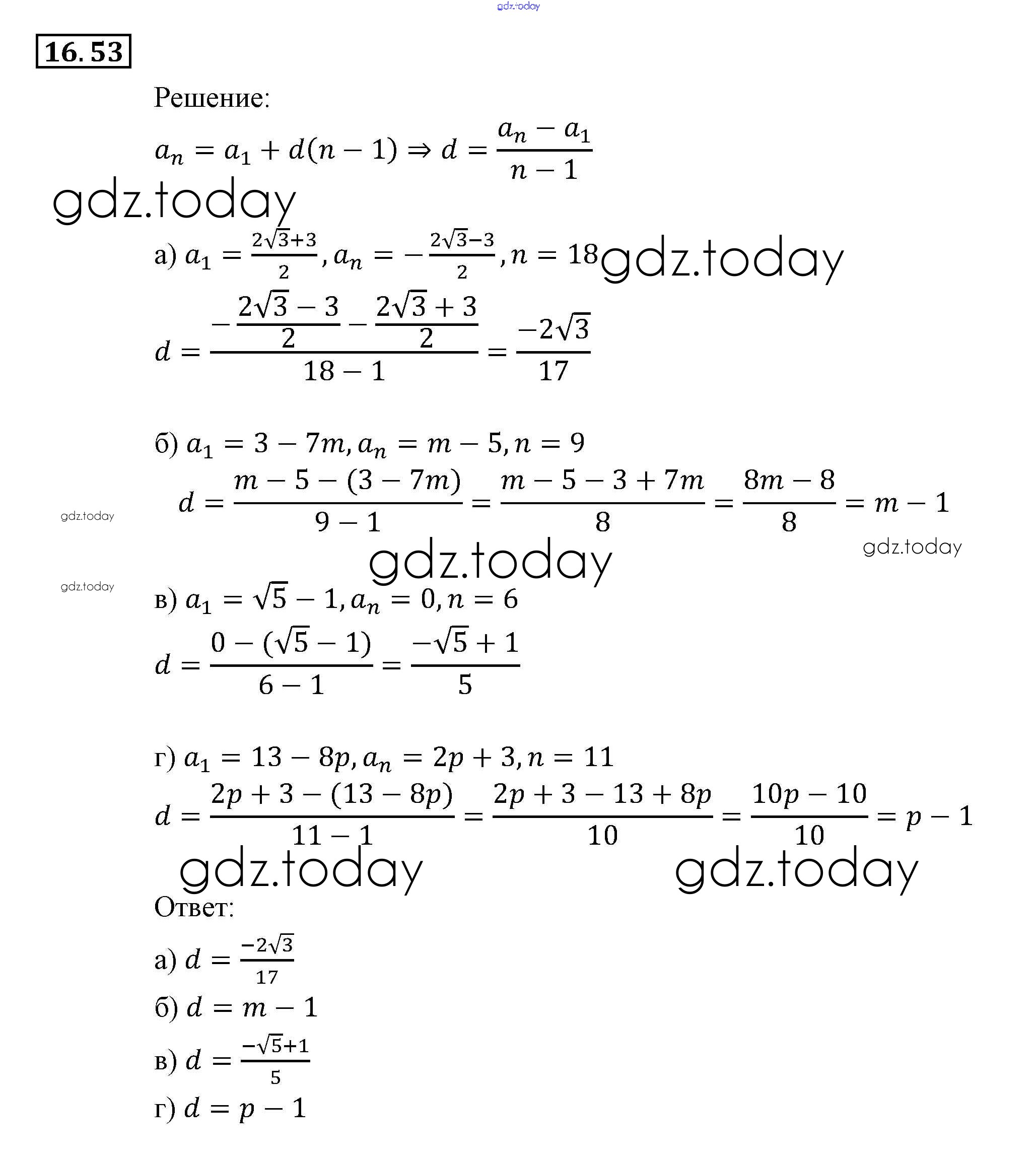 На страницах сайта gdz.today вы найдете учебный и вспомогательный материал, направленный на улучшения знаний школьной программы. ГДЗ - онлайн мир знаний § 16. Арифметическая прогрессия Глава 4. Прогрессии 53 Задачнику по Алгебре для 9 класса Мордкович, Александрова Мнемозина 2010