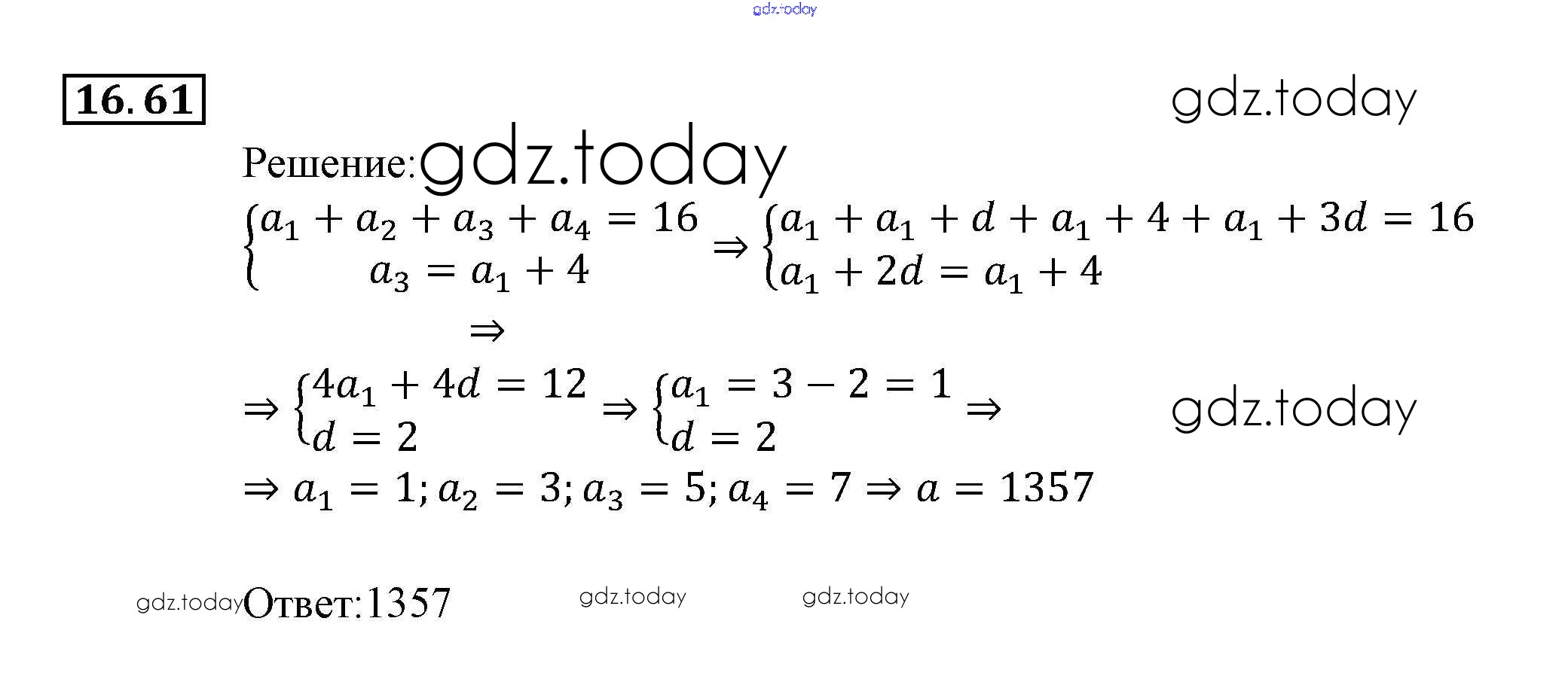 На страницах сайта gdz.today вы найдете учебный и вспомогательный материал, направленный на улучшения знаний школьной программы. ГДЗ - онлайн мир знаний § 16. Арифметическая прогрессия Глава 4. Прогрессии 61 Задачнику по Алгебре для 9 класса Мордкович, Александрова Мнемозина 2010