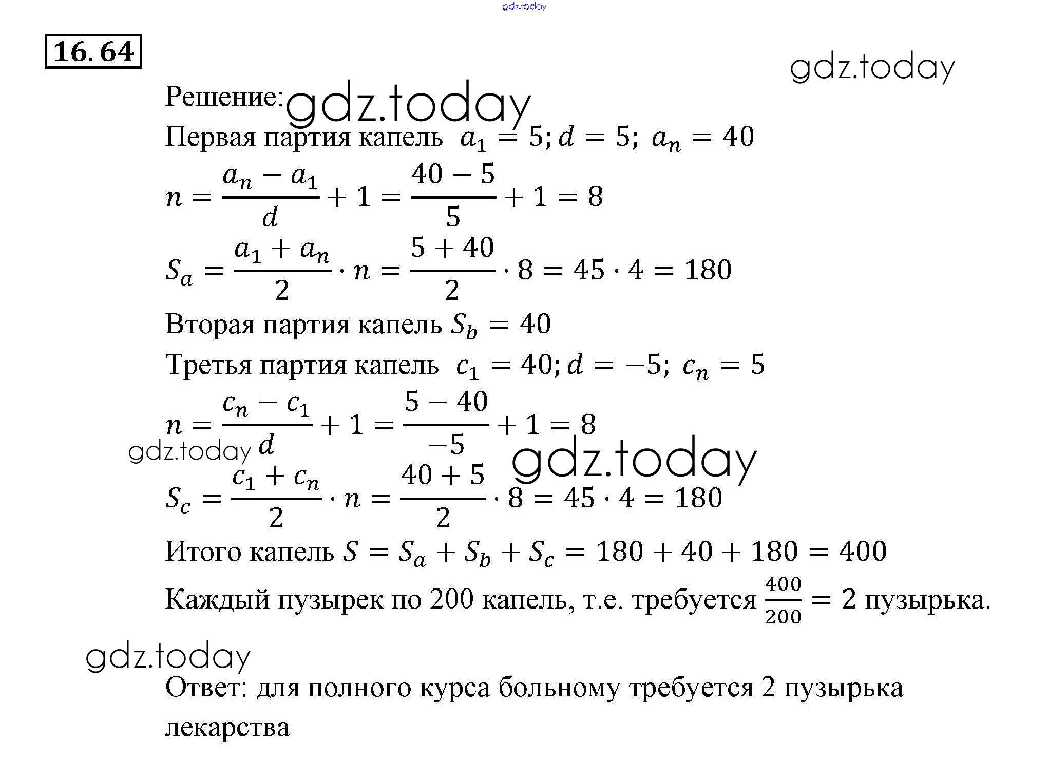 На страницах сайта gdz.today вы найдете учебный и вспомогательный материал, направленный на улучшения знаний школьной программы. ГДЗ - онлайн мир знаний § 16. Арифметическая прогрессия Глава 4. Прогрессии 64 Задачнику по Алгебре для 9 класса Мордкович, Александрова Мнемозина 2010