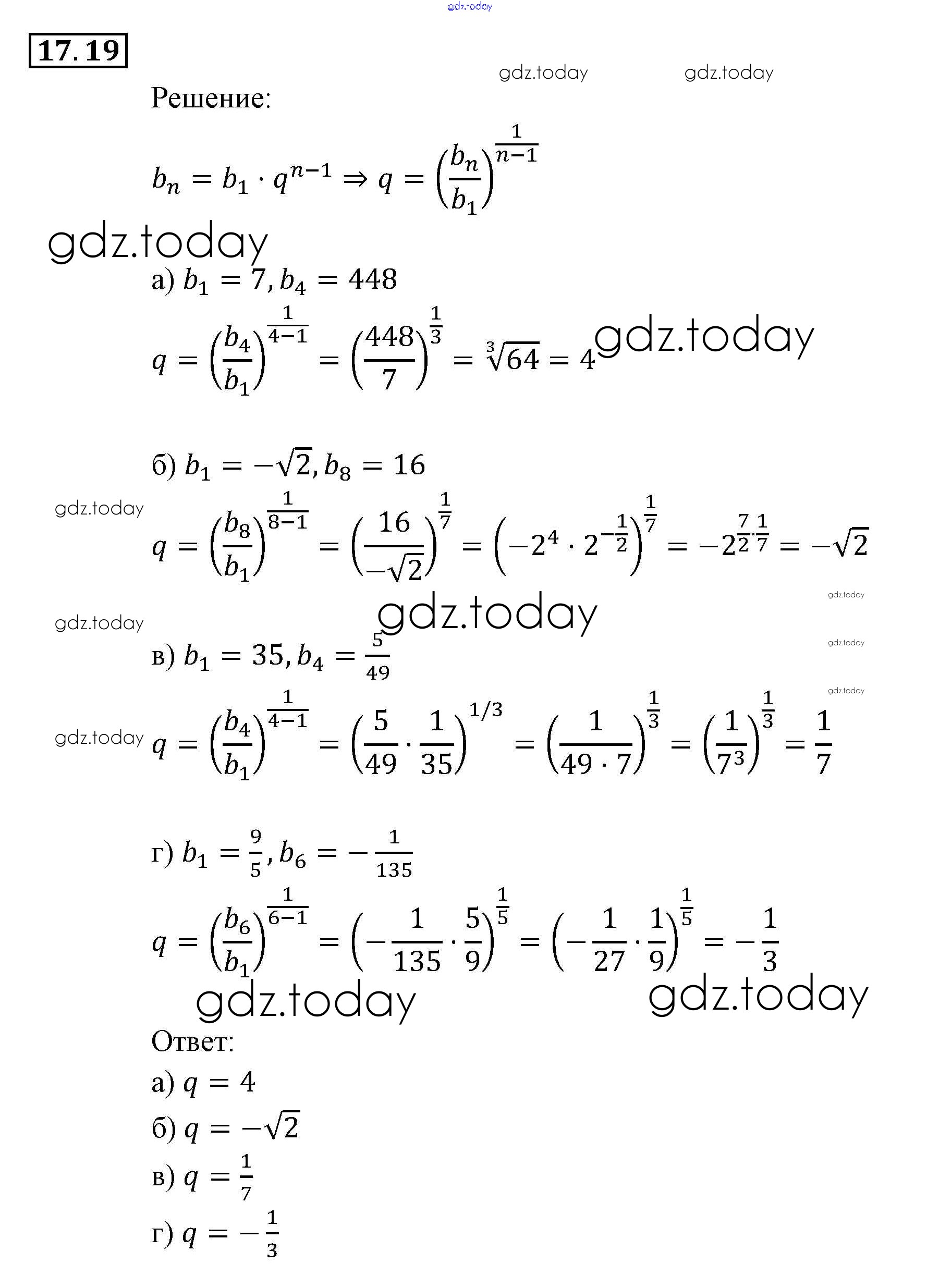 На страницах сайта gdz.today вы найдете учебный и вспомогательный материал, направленный на улучшения знаний школьной программы. ГДЗ - онлайн мир знаний § 17. Геометрическая прогрессия Глава 4. Прогрессии 19 Задачнику по Алгебре для 9 класса Мордкович, Александрова Мнемозина 2010