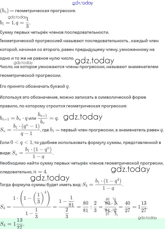 На страницах сайта gdz.today вы найдете учебный и вспомогательный материал, направленный на улучшения знаний школьной программы. ГДЗ - онлайн мир знаний § 17. Геометрическая прогрессия Решение. Глава 4. Прогрессии 17.25 Задачнику по Алгебре для 9 класса Мордкович, Александрова Мнемозина 2010
