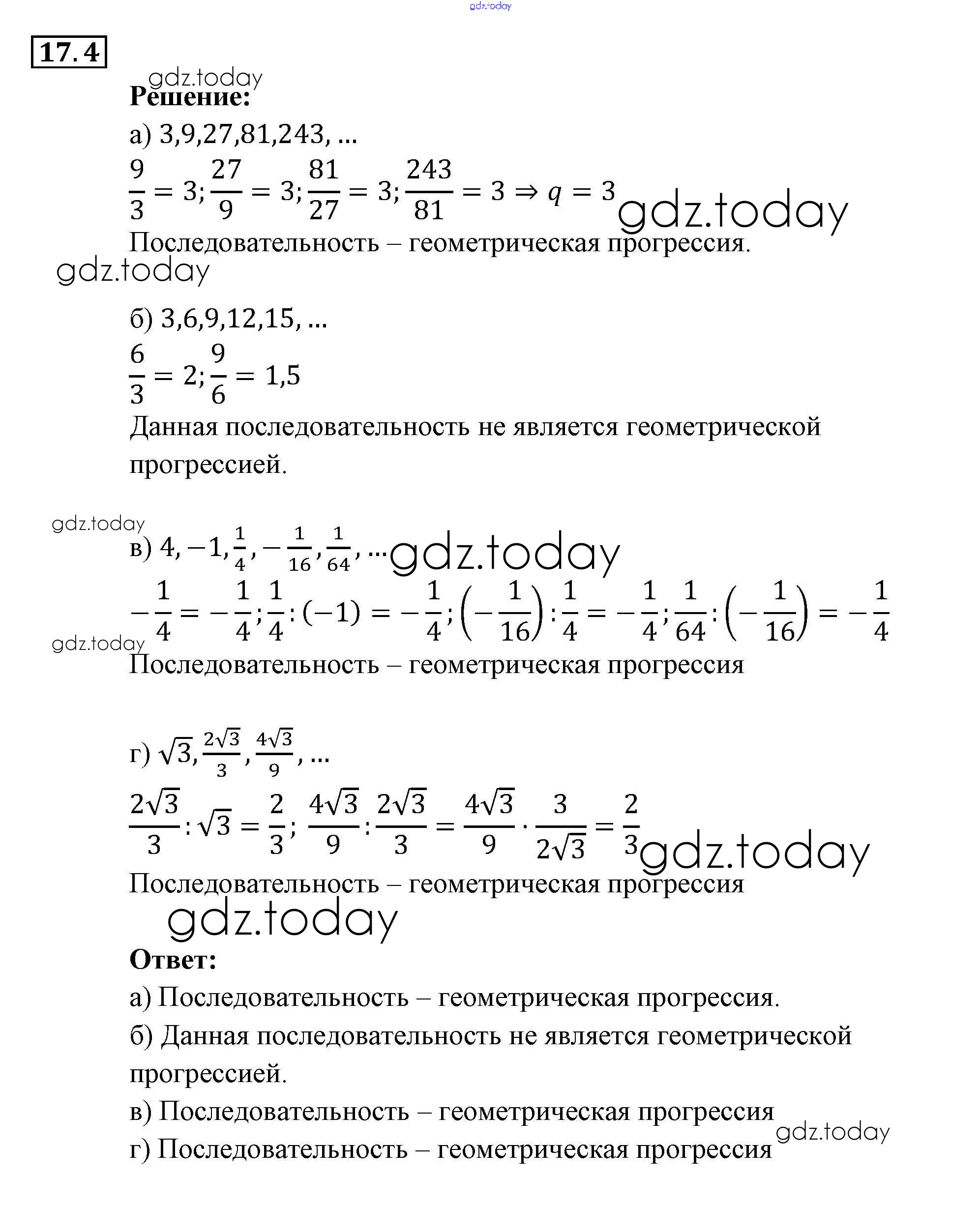 На страницах сайта gdz.today вы найдете учебный и вспомогательный материал, направленный на улучшения знаний школьной программы. ГДЗ - онлайн мир знаний § 17. Геометрическая прогрессия Глава 4. Прогрессии 4 Задачнику по Алгебре для 9 класса Мордкович, Александрова Мнемозина 2010