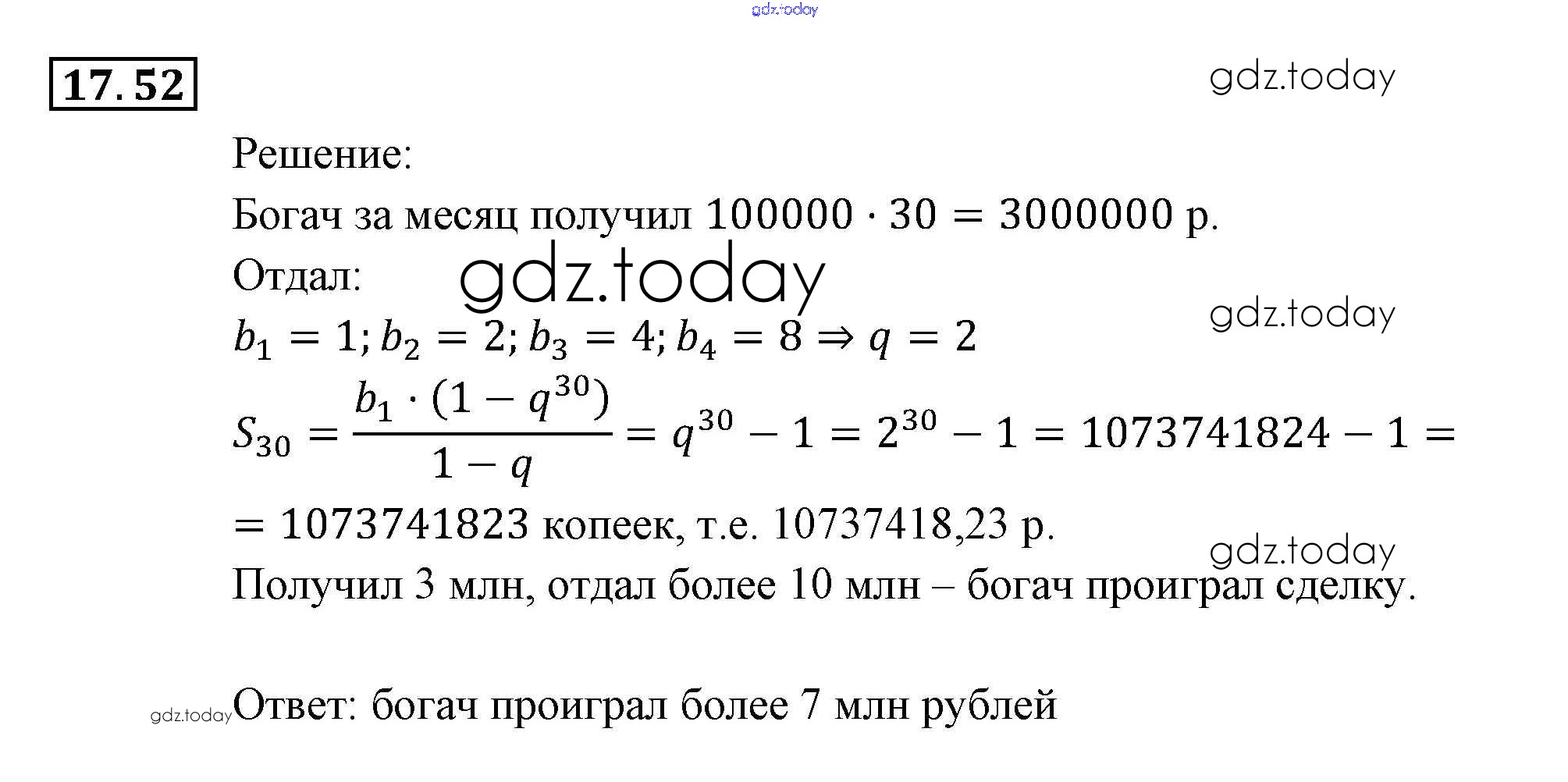 На страницах сайта gdz.today вы найдете учебный и вспомогательный материал, направленный на улучшения знаний школьной программы. ГДЗ - онлайн мир знаний § 17. Геометрическая прогрессия Глава 4. Прогрессии 52 Задачнику по Алгебре для 9 класса Мордкович, Александрова Мнемозина 2010