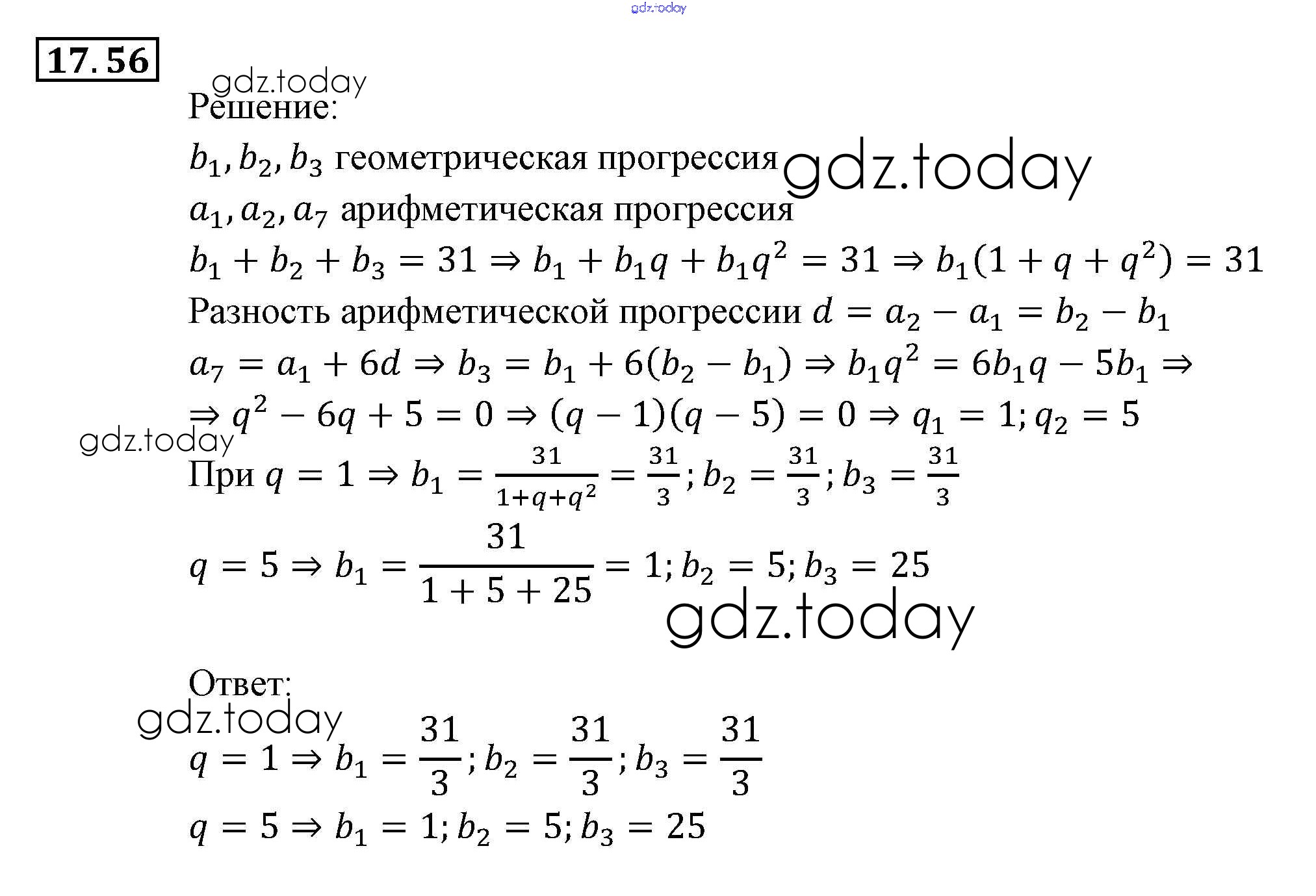 На страницах сайта gdz.today вы найдете учебный и вспомогательный материал, направленный на улучшения знаний школьной программы. ГДЗ - онлайн мир знаний § 17. Геометрическая прогрессия Глава 4. Прогрессии 56 Задачнику по Алгебре для 9 класса Мордкович, Александрова Мнемозина 2010