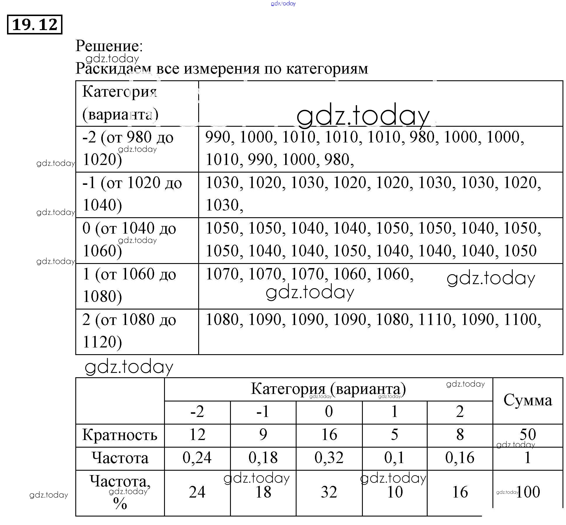 Ответы к § 19. Статистика — дизайн информации Глава 5. Элементы комбинаторики, статистики и теории вероятностей 12 Задачнику по Алгебре для 9 класса Мордкович, Александрова Мнемозина 2010