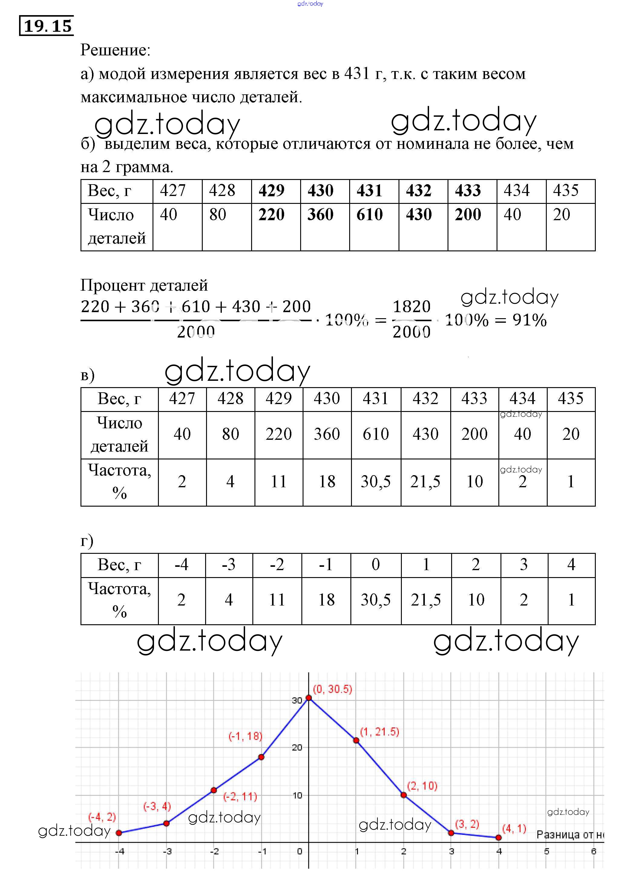 Ответы к § 19. Статистика — дизайн информации Глава 5. Элементы комбинаторики, статистики и теории вероятностей 15 Задачнику по Алгебре для 9 класса Мордкович, Александрова Мнемозина 2010