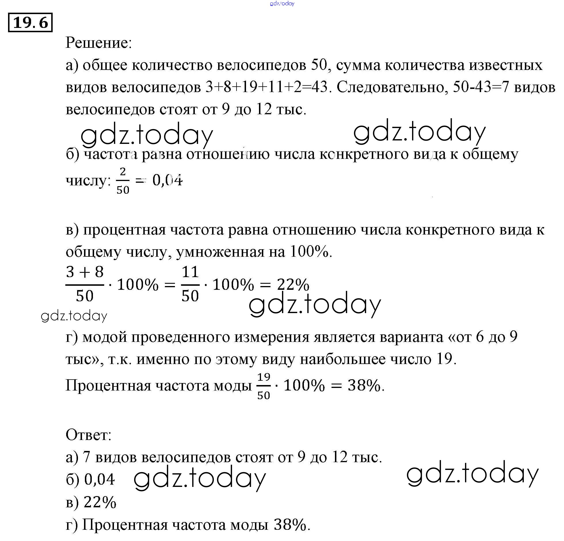 Ответы к § 19. Статистика — дизайн информации Глава 5. Элементы комбинаторики, статистики и теории вероятностей 6 Задачнику по Алгебре для 9 класса Мордкович, Александрова Мнемозина 2010