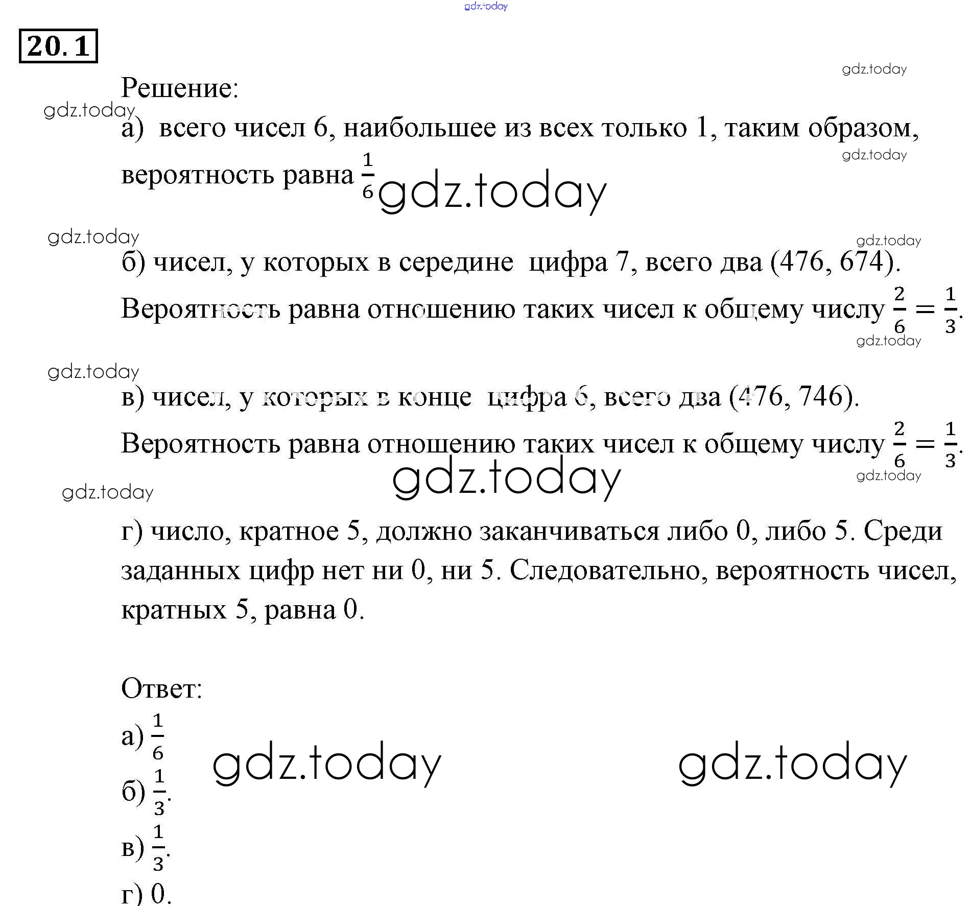 На страницах сайта gdz.today вы найдете учебный и вспомогательный материал, направленный на улучшения знаний школьной программы. ГДЗ - онлайн мир знаний § 20. Простейшие вероятностные задачи Глава 5. Элементы комбинаторики, статистики и теории вероятностей 1 Задачнику по Алгебре для 9 класса Мордкович, Александрова Мнемозина 2010