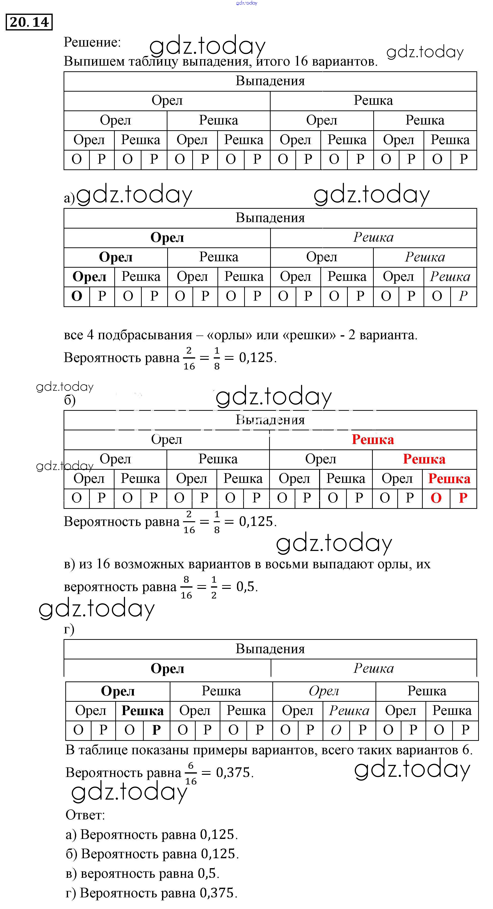 Ответы к § 20. Простейшие вероятностные задачи Глава 5. Элементы комбинаторики, статистики и теории вероятностей 14 Задачнику по Алгебре для 9 класса Мордкович, Александрова Мнемозина 2010