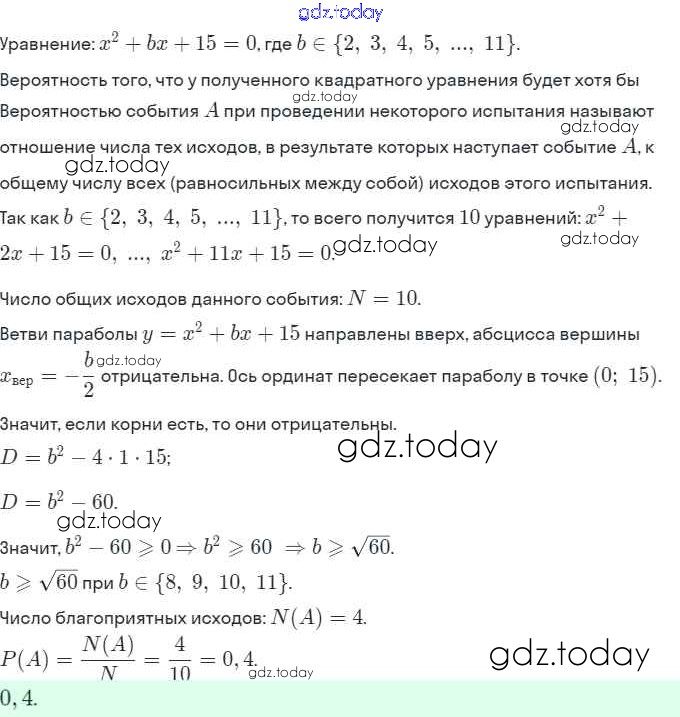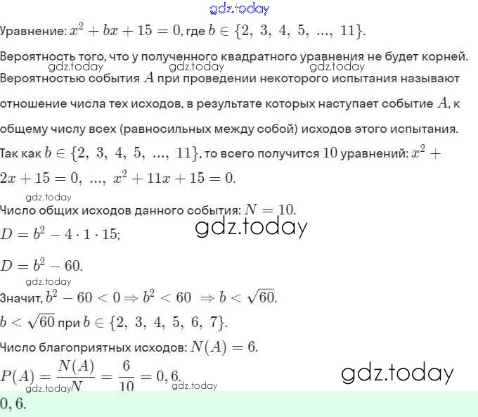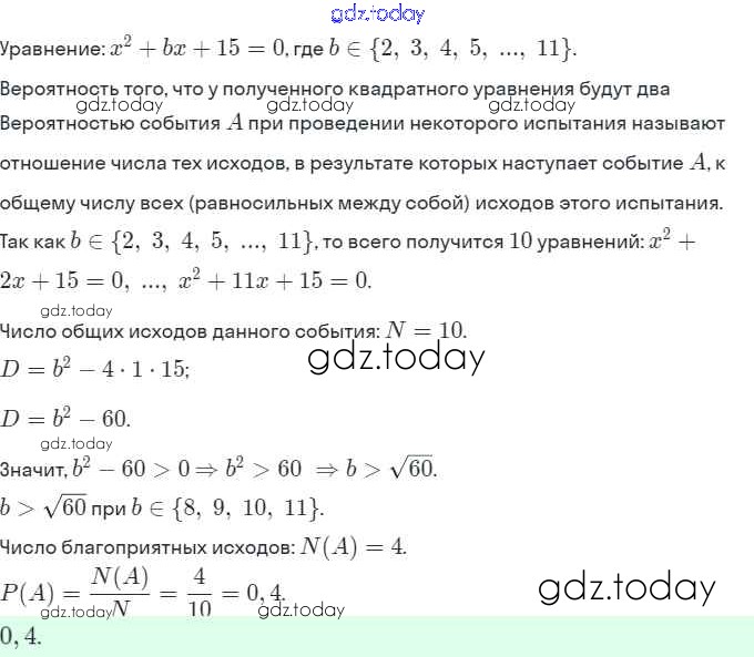На страницах сайта gdz.today вы найдете учебный и вспомогательный материал, направленный на улучшения знаний школьной программы. ГДЗ - онлайн мир знаний § 20. Простейшие вероятностные задачи Решение. Глава 5. Элементы комбинаторики, статистики и теории вероятностей 20.15 Задачнику по Алгебре для 9 класса Мордкович, Александрова Мнемозина 2010