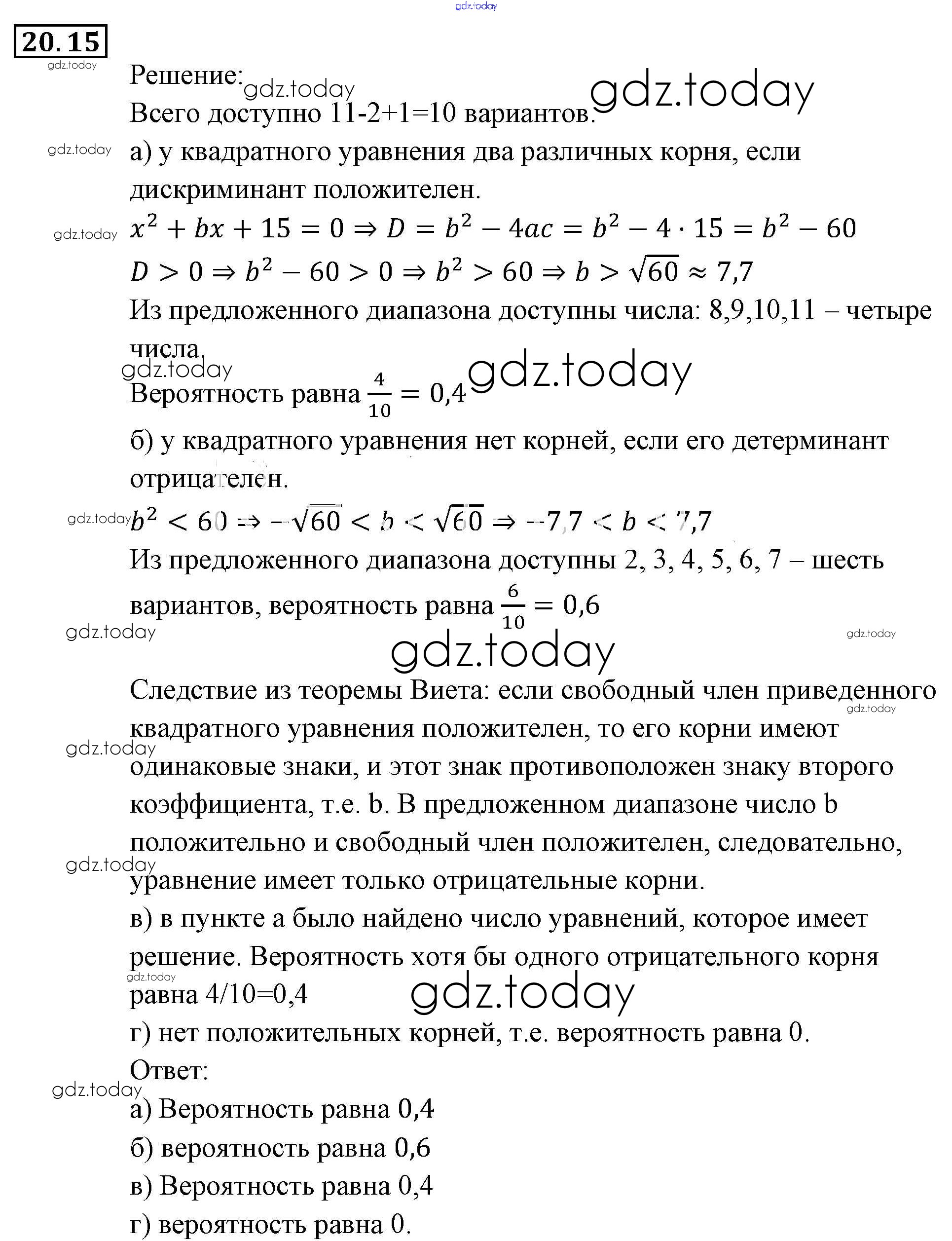 На страницах сайта gdz.today вы найдете учебный и вспомогательный материал, направленный на улучшения знаний школьной программы. ГДЗ - онлайн мир знаний § 20. Простейшие вероятностные задачи Глава 5. Элементы комбинаторики, статистики и теории вероятностей 15 Задачнику по Алгебре для 9 класса Мордкович, Александрова Мнемозина 2010