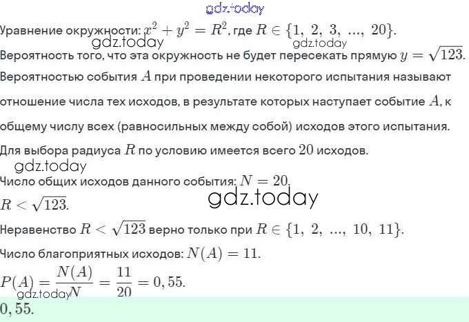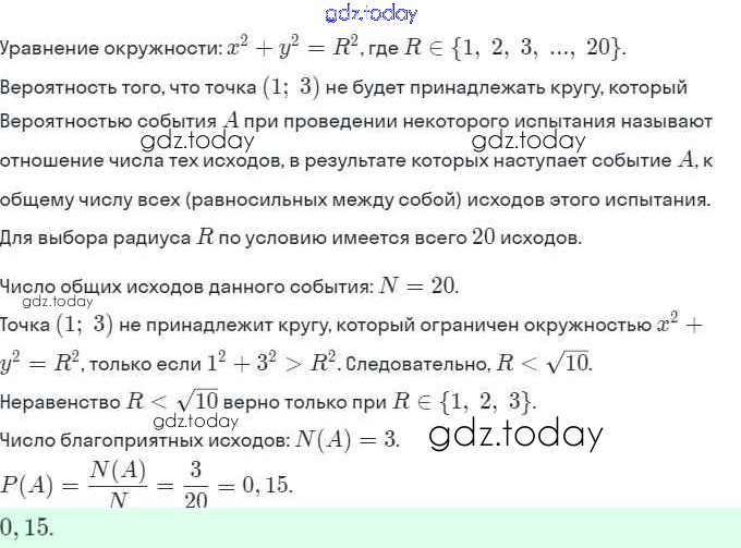 Ответы к § 20. Простейшие вероятностные задачи Решение. Глава 5. Элементы комбинаторики, статистики и теории вероятностей 20.16 Задачнику по Алгебре для 9 класса Мордкович, Александрова Мнемозина 2010