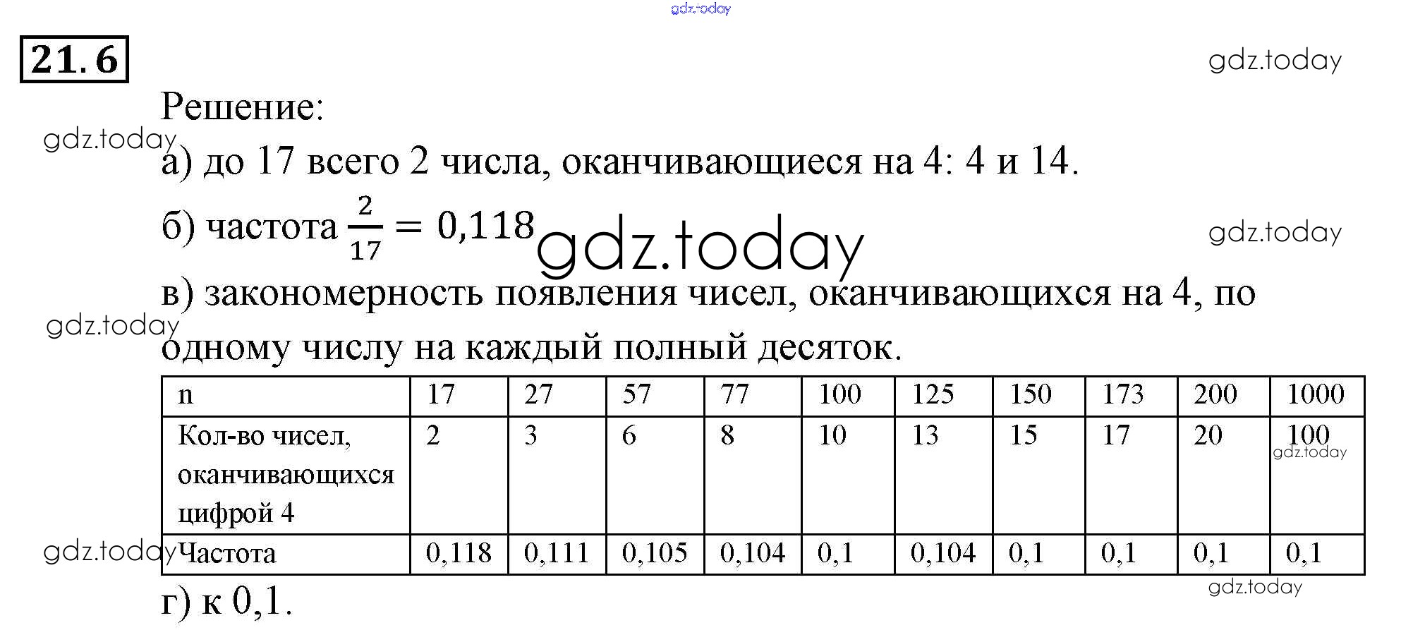 Ответы к § 21. Экспериментальные данные и вероятности событий Глава 5. Элементы комбинаторики, статистики и теории вероятностей 6 Задачнику по Алгебре для 9 класса Мордкович, Александрова Мнемозина 2010